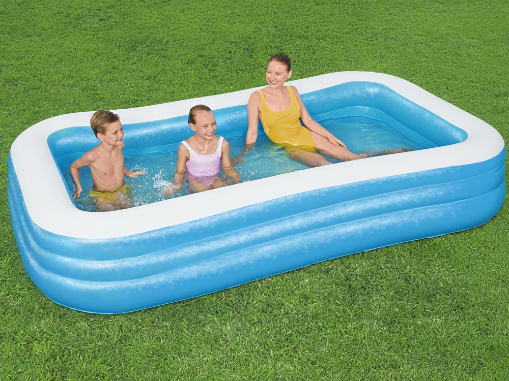 Potřebujete se někdy v horkém dni zchladit a nemáte čas jít do městského bazénu nebo jet k vodě? Proto vám představuji tento senzační nafukovací rodinný bazén určený pro relaxaci v horkých dnech pro celou rodinu. Velmi rychle ji rozložíte, naplníte vodou a relaxace je připravena. Velký nafukovací bazén o rozměrech 305 cm x 183 cm x 56 cm pojme každého, kdo se potřebuje zchladit. Bazén se skládá ze tří nafukovacích prstenců, které mu dodávají pevnost. Fantastická modrá a bílá barva dokonce vybízí k tomu, abyste si v ní hráli. Výrobek je vyroben z odolného PVC, které zajišťuje dlouhé používání, takže si můžete být jisti, že vám vydrží dlouhá léta.