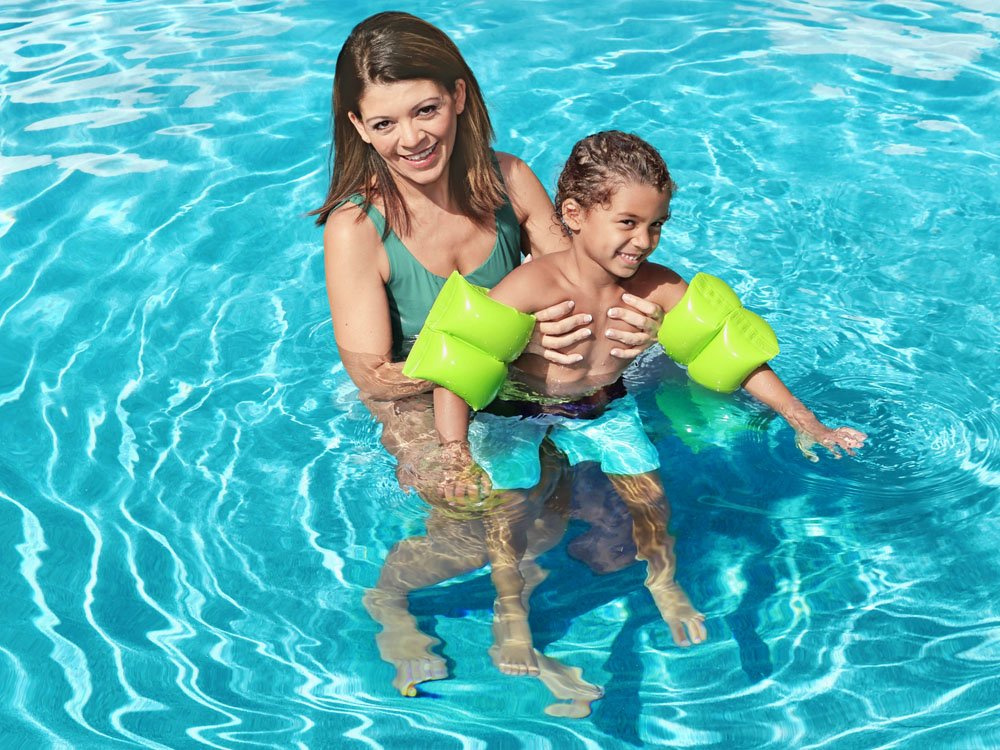 Rukávky Bestway Swim Learning Sleeves jsou nezbytnou výbavou každého batolete při hře v bazénu, moři nebo jezeře.Motýli v letní zelené barvě jsou velmi dobře tvarovaní, takže nijak neomezují volnost pohybu ani při plavání, ani při hře ve vodě. Vaše dítě se bude při hře nebo výuce plavání ve vodě cítit bezpečně. Návleky mají odolné ventily a dvě vzduchové komory , snadno se nafukují bez použití nafukovačky, jsou chráněny ventilem, který zabraňuje neplánovanému úniku vzduchu, a jsou vyrobeny z odolného vinylového materiálu.