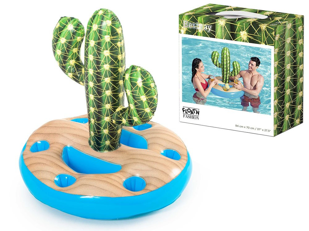 Plovoucí držák na nápoje ve tvaru kaktusu od společnosti Bestway bude skvělým doplňkem při koupání v bazénu. S tímto fantastickým přístrojem si budete připadat jako na dovolené v tropech. Stojan se hodí také u jezera nebo moře. Díky nafukovacímu plovoucímu podšálku budete mít své oblíbené nápoje vždy na dosah, aniž by hrozilo utopení šálku nebo nutnost vylézt z vody - naprostá lehkost a pohodlí!