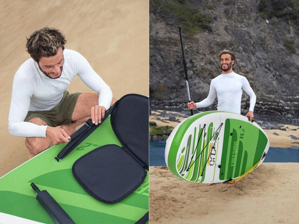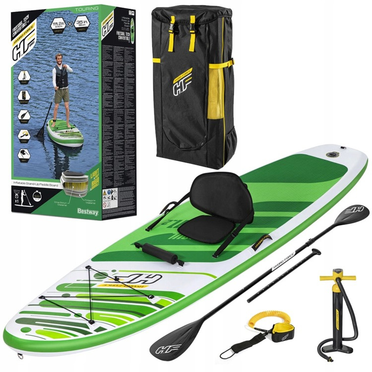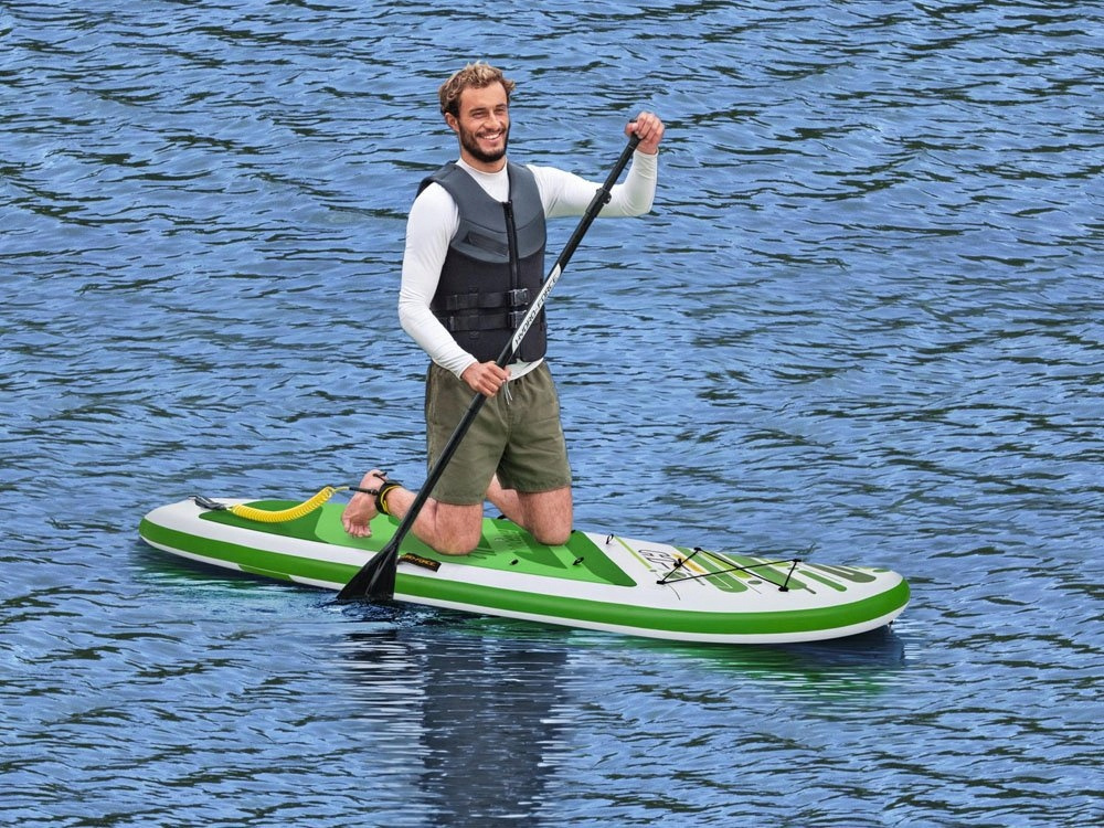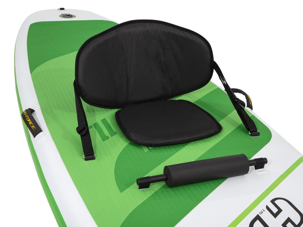 Surfovací prkno Bestway má pohodlné sedadlo s opěradlem. Součástí balení je také robustní pádlo, ruční pumpa a opravná sada. Jedná se o nezbytné zavazadlo na dovolenou pro všechny milovníky dlouhých cest po vodních plochách. Pokud dáváte přednost aktivnímu odpočinku před lenošením na pláži, je tento produkt určen právě pro vás! Nafukovací deska je ideální pro jízdu na kajaku a jógu.