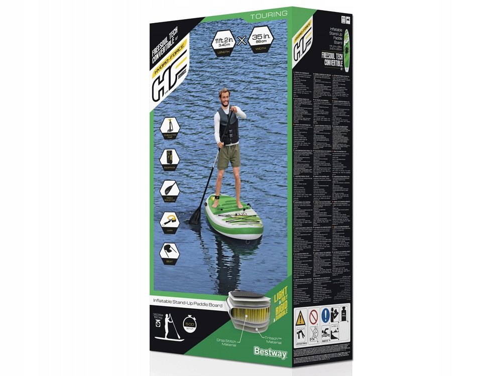 Nafukovací prkno Stand Up FreeSoul Tech Convertible 2 v 1 od společnosti Bestway o rozměrech 340 x 89 x 15 cm je ideálním způsobem, jak zůstat aktivní u vody. Skvěle vyrobené prkno s protiskluzovým povrchem, velmi dobře tvarované s pružným surfařským vodítkem se osvědčí na nejednom vodním díle.