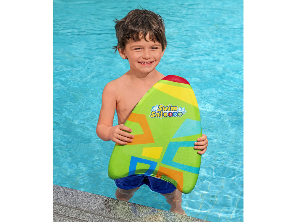 Deska o rozměrech 42x32x35 cm má ergonomický tvar. Je vyroben z odolné pěny s vynikajícím vztlakem. Kromě toho je potažen látkou s barevnou grafikou, aby se pohodlně držel a neklouzal z rukou. Vhodné pro děti od 3 do 6 let.