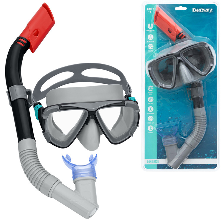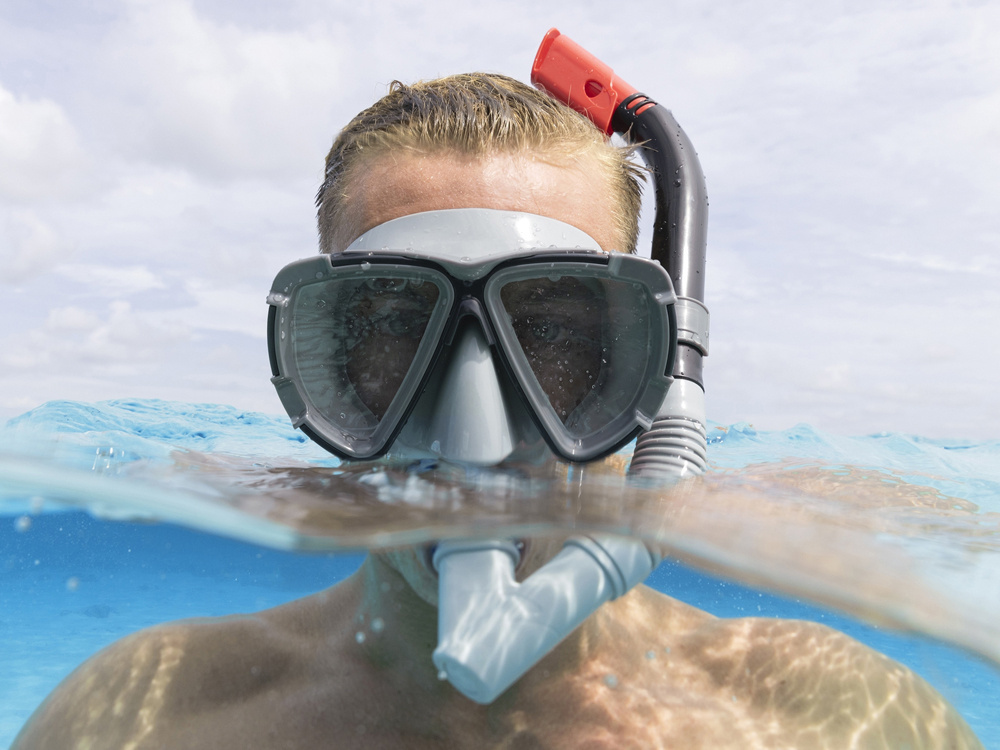 Maska Dominator Snorkel od společnosti Bestway® byla navržena pro milovníky podvodních výletů. Maska je určena pro plavce od 14 let. Sada obsahuje masku a šnorchl.Průhledná skla masky jsou vyrobena z polykarbonátu s ochrannou vrstvou proti UV záření, která chrání oči před ostrými slunečními paprsky. Hodí se k oceánu nebo k bazénu na dvorku.Maska má nepropustný okraj a plně nastavitelný hlavový pásek, který zajišťuje, že maska zůstane na hlavě přesně a pohodlně usazená. Jako bonus je celá sada pro větší bezpečnost vyrobena z materiálů bez latexu.