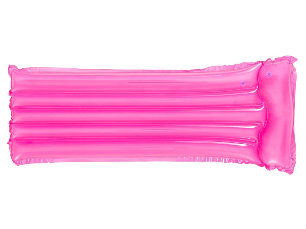 Nafukovací růžová matrace je fantastickou volbou pro milovníky venkovní relaxace. Jednoduché, barevné nafukovací lehátko do vody je nezbytnou součástí výbavy pro výlet k vodě nebo relaxaci v bazénu. Nabízený model unese na své ploše až 90 kg vážící osobu, takže se bude hodit pro děti i dospělé. Plavecká matrace o rozměrech 183 cm x 76 cm s nafukovací opěrkou hlavy je vyrobena z měkkého, ale odolného PVC. Tento výrobek ve svěžích letních barvách se bude velmi dobře vyjímat na každé pláži.