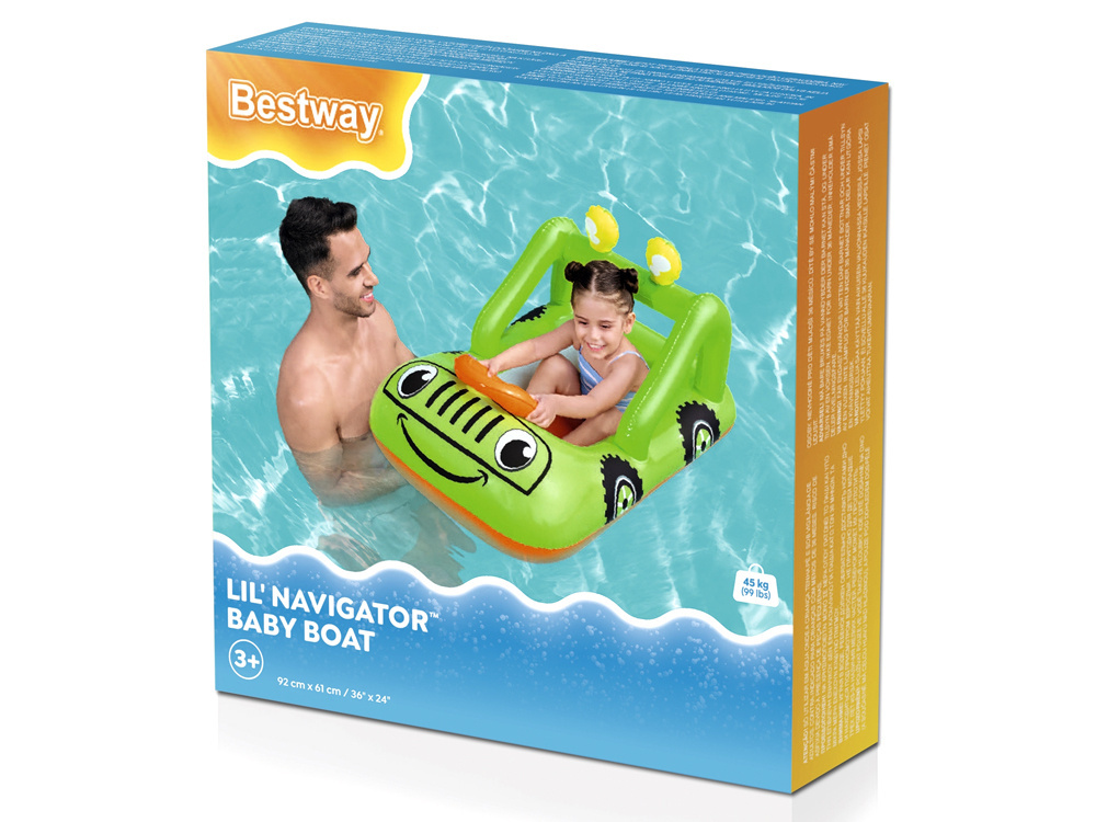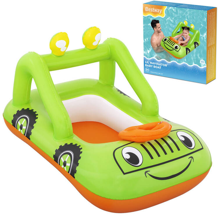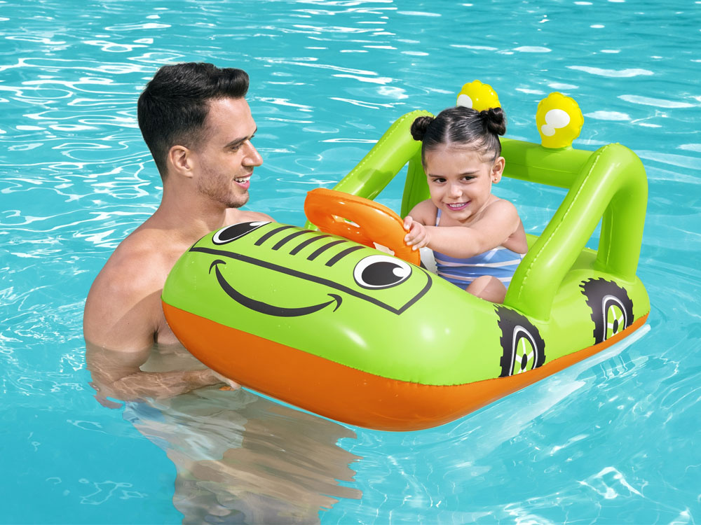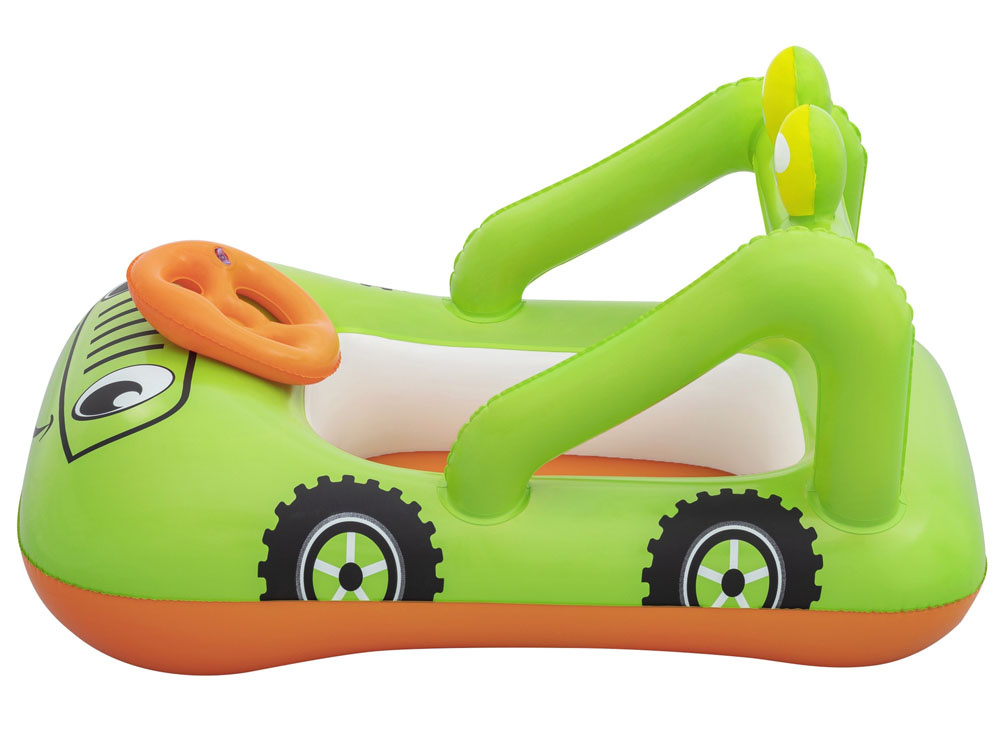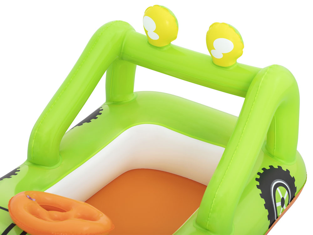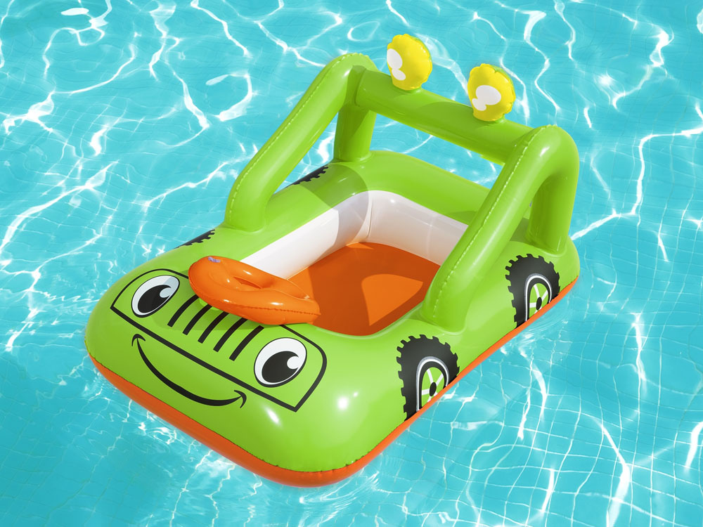 Díky grafice pontonu vypadá jako zelený terénní vůz a nafukovací volant vás povzbudí k stylovému manévrování po vodě. Senzační člun-auto poskytne vašemu dítěti skvělou zábavu během horkých dnů a vyvolá v něm touhu vydat se na vodní dobrodružství.