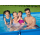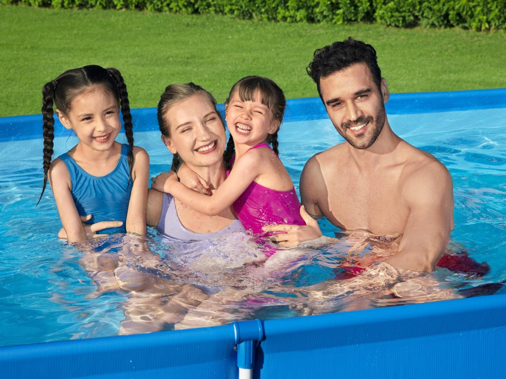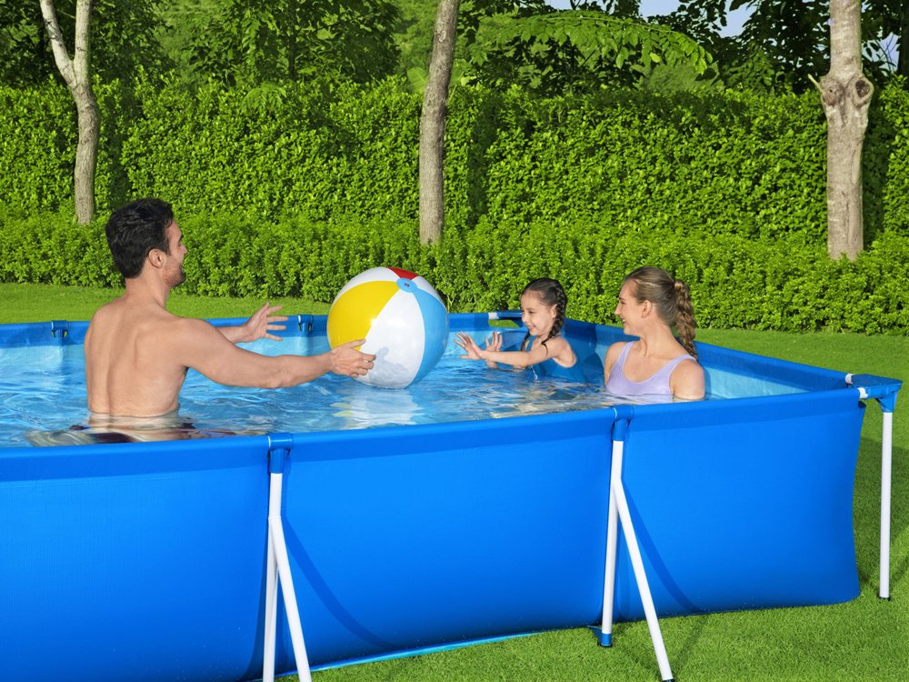 Potřebujete se někdy v horkém dni zchladit a nemáte čas jít do městského bazénu nebo jet k vodě? Proto vám představujeme tento senzační rámový bazén určený pro relaxaci v horkých dnech pro celou rodinu. Velmi rychle ji rozložíte, naplníte vodou a relaxace je připravena. Velký obdélníkový bazén má rozměry 300 x 201 x 66 cm a kapacitu 3 300 l vody, aby se do něj vešly všechny děti, které se potřebují ochladit. Pro rychlé vypouštění se používají speciální ventily. O filtraci vody se postará čerpadlo s výkonem 1249 l/h. Výrobek je vyroben z materiálu DuraPlus, jehož jádro tvoří polyesterová síťovina spojená se dvěma vrstvami silného PVC. To zaručuje velkou pevnost a odolnost.