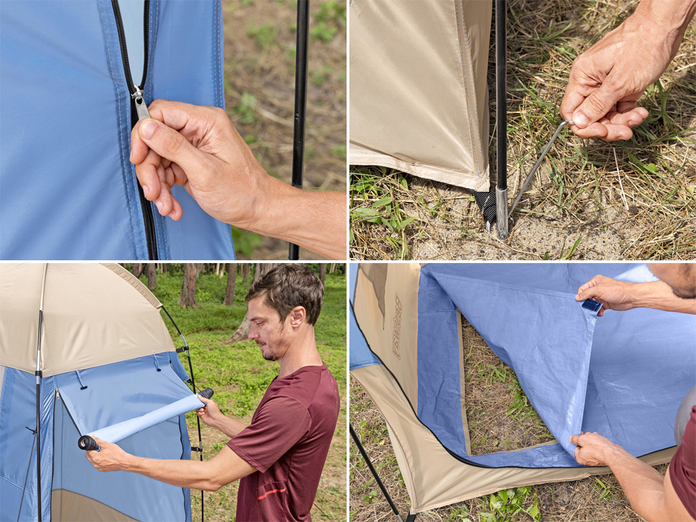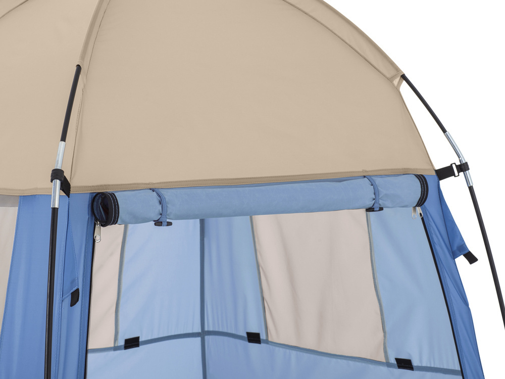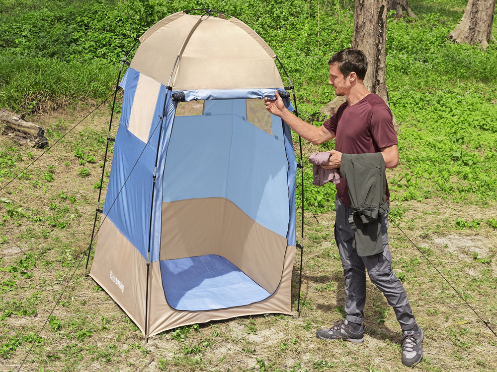 Turistický převlékací stan Bestway je praktický stan, který poslouží jako soukromá převlékárna na pláži, u bazénu, jezera nebo v kempu. Budete se moci bez rozpaků převléknout z mokrých plavek nebo se jen převléknout. Vysoký stan umožňuje volný pohyb při převlékání. Lze ji také využít například jako úložný prostor pro nafukovací předměty v kempu nebo ji lze využít na výstavišti, kde není místo na zkoušení kalhot : ). Šatna je vybavena podlahou, kterou lze pro čištění vyjmout. Snadno se rozkládá a skládá.