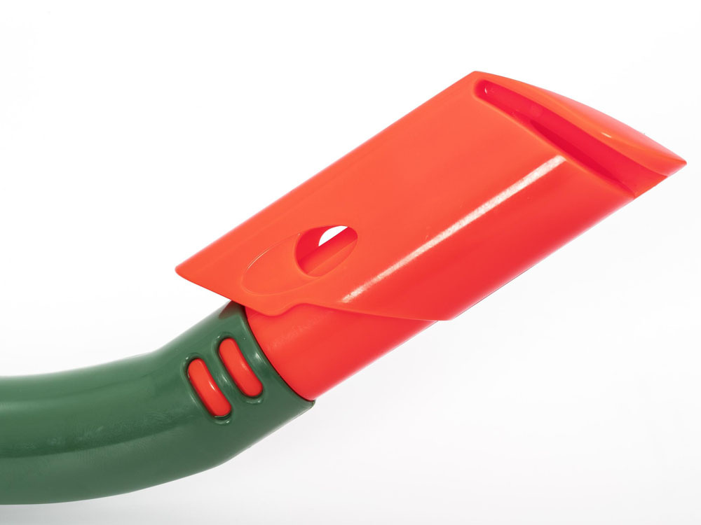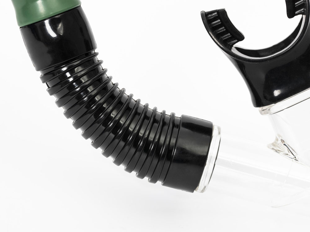 Silikonový komfortní náústek a měkký okraj kolem masky, který se přizpůsobí obličeji, zajišťují dokonalé přizpůsobení a zabraňují vniknutí vody do okuláru.Trubka je vybavena technologií suchého vstupu, která zabraňuje pronikání vody na povrch v případě rozstřiku.