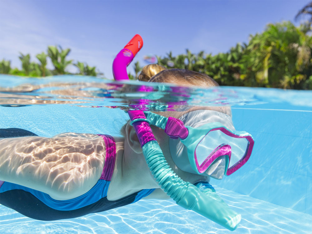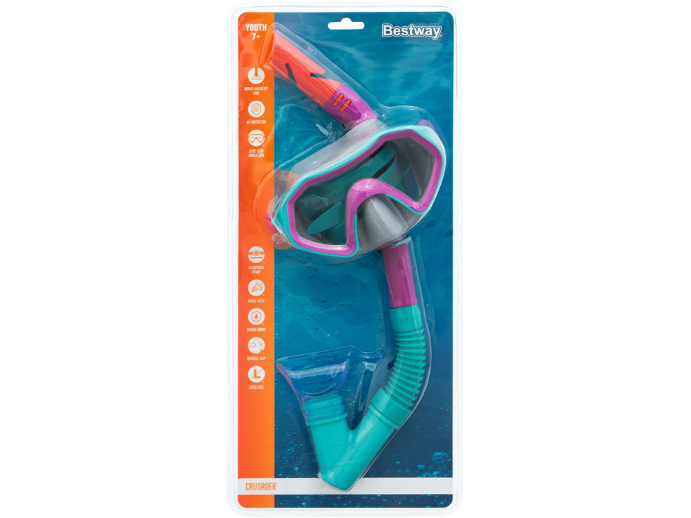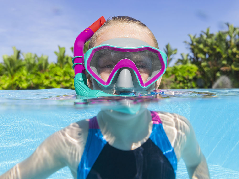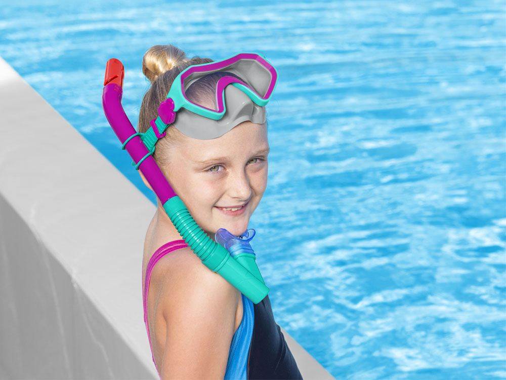 Kapitální sada pro mladé potápěče maska a trubice Hydro Swim od společnosti Bestway umožní dětem od 7 let prozkoumávat podvodní svět. Univerzální masku s nastavitelným popruhem lze snadno přizpůsobit hlavě dítěte, trubice s pohodlným silikonovým náustkem zajistí pohodlné dýchání při plavání. Maska s polykarbonátovými čočkami zajistí čistý obraz pod vodou.