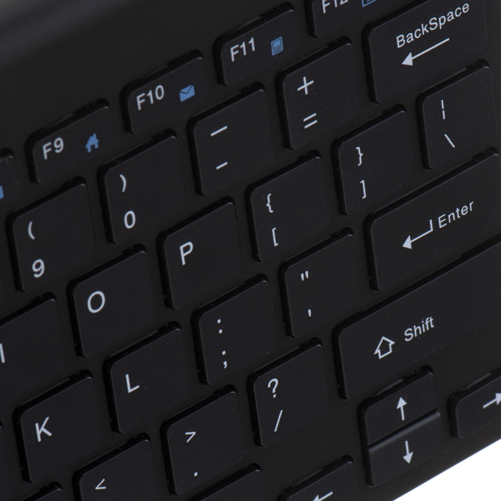 Tenký design a kompaktní rozměry klávesnice zajišťují uživatelské pohodlí a zároveň šetří pracovní prostor. Díky nízkoprofilovým klávesám je psaní na klávesnici pohodlné a tiché. Mírný náklon klávesnice zaručuje maximální pohodlí při používání.