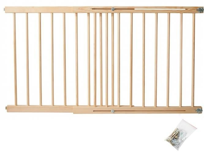 SPECIFIKACE - materiál: dřevo - borovice, brána je vhodná pro průjezdy o šířce 72-122 cm; výška brány: 68cm; tloušťka příčky: 19mm; hmotnost sady: 3 kg.