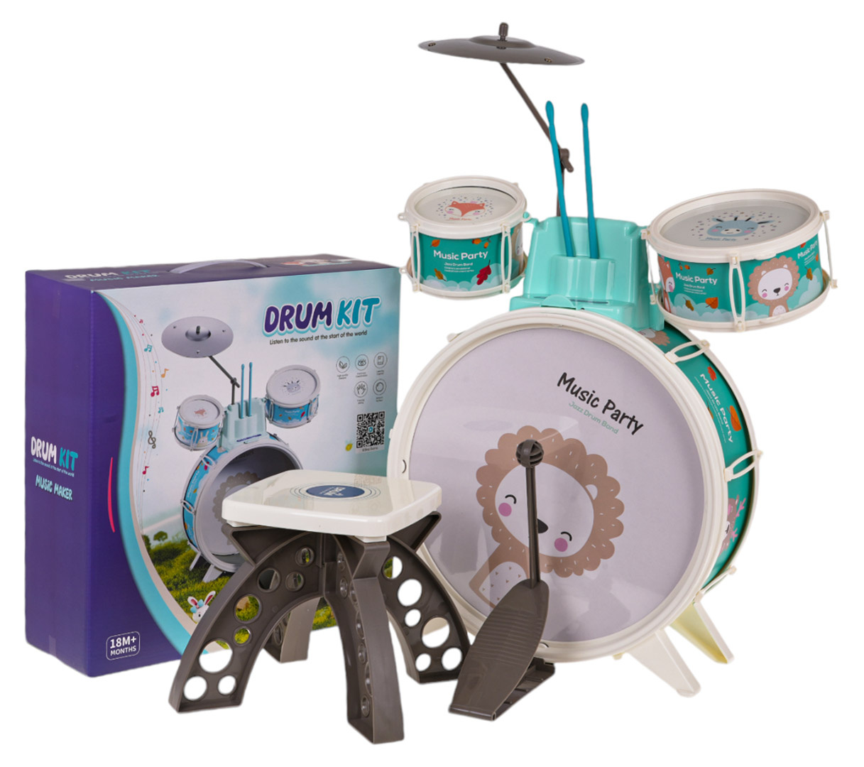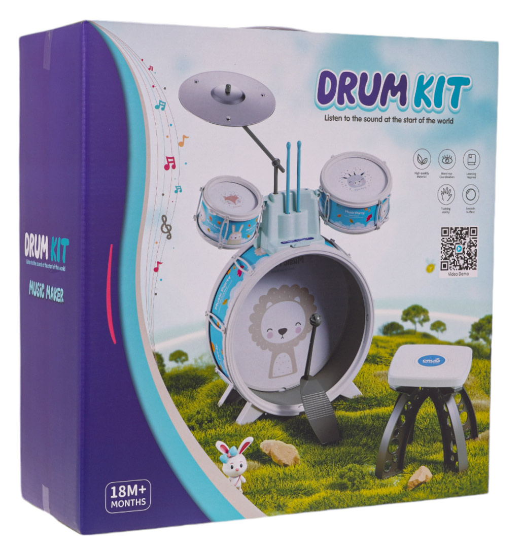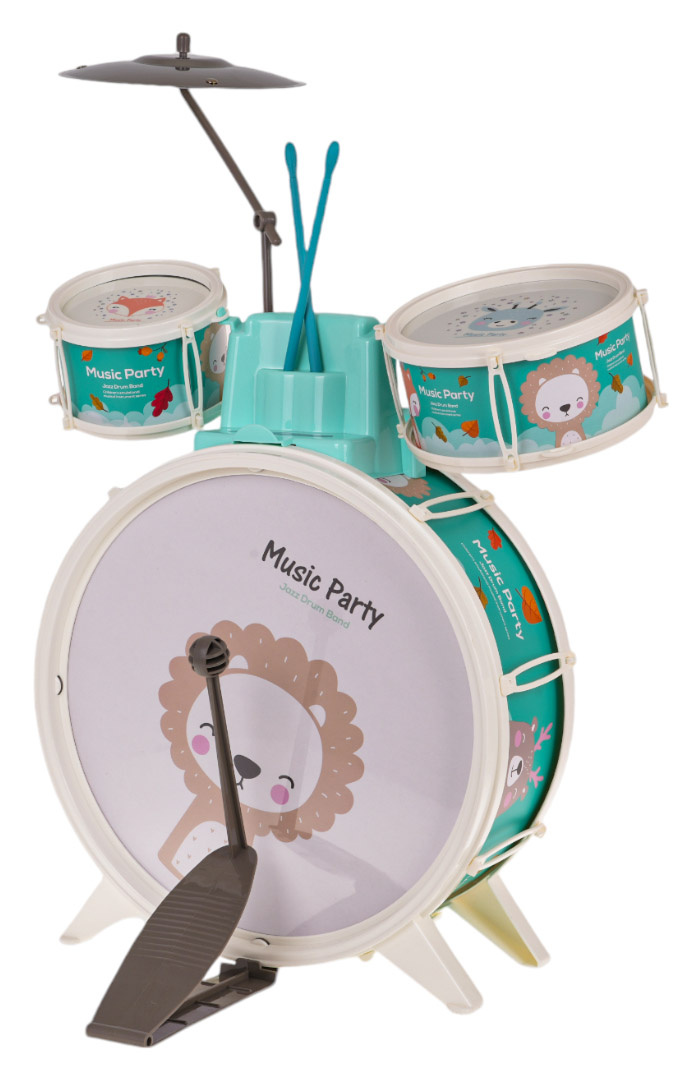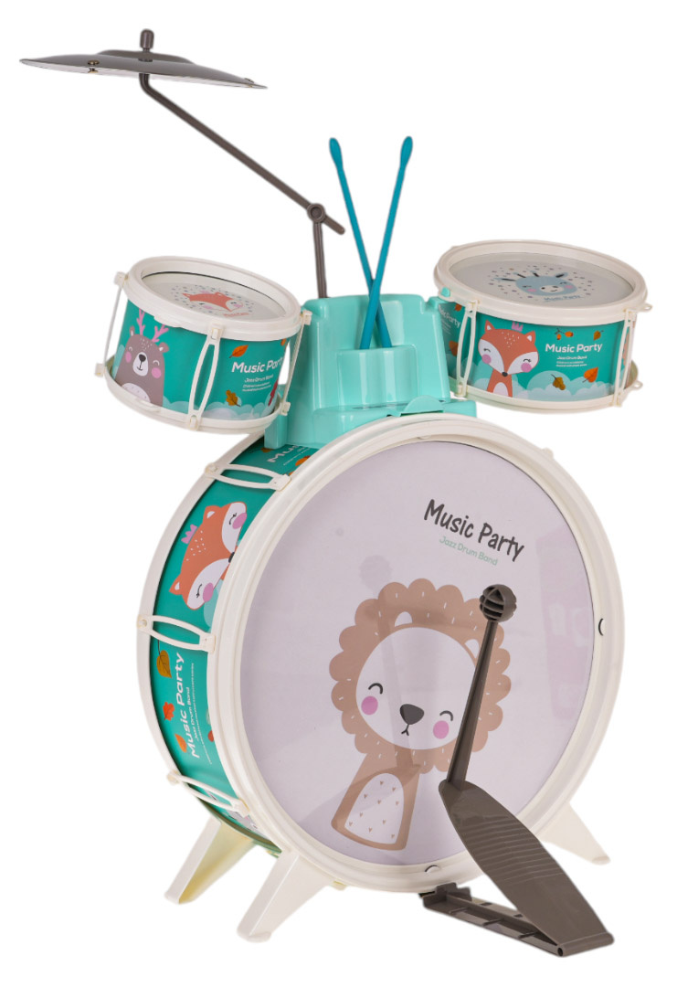 Bicí souprava pro nejmenší děti od 18 měsíců věku se stoličkou v sadě. Hračka byla vyrobena z nejkvalitnějších materiálů v živých barvách, které přitahují pozornost dítěte. Bicí souprava se skládá ze 3 bubnů ozdobených obrázky zvířátek, jako jsou lev, osel nebo liška, činel a paličky. Máme také pohodlnou stoličku na sezení.