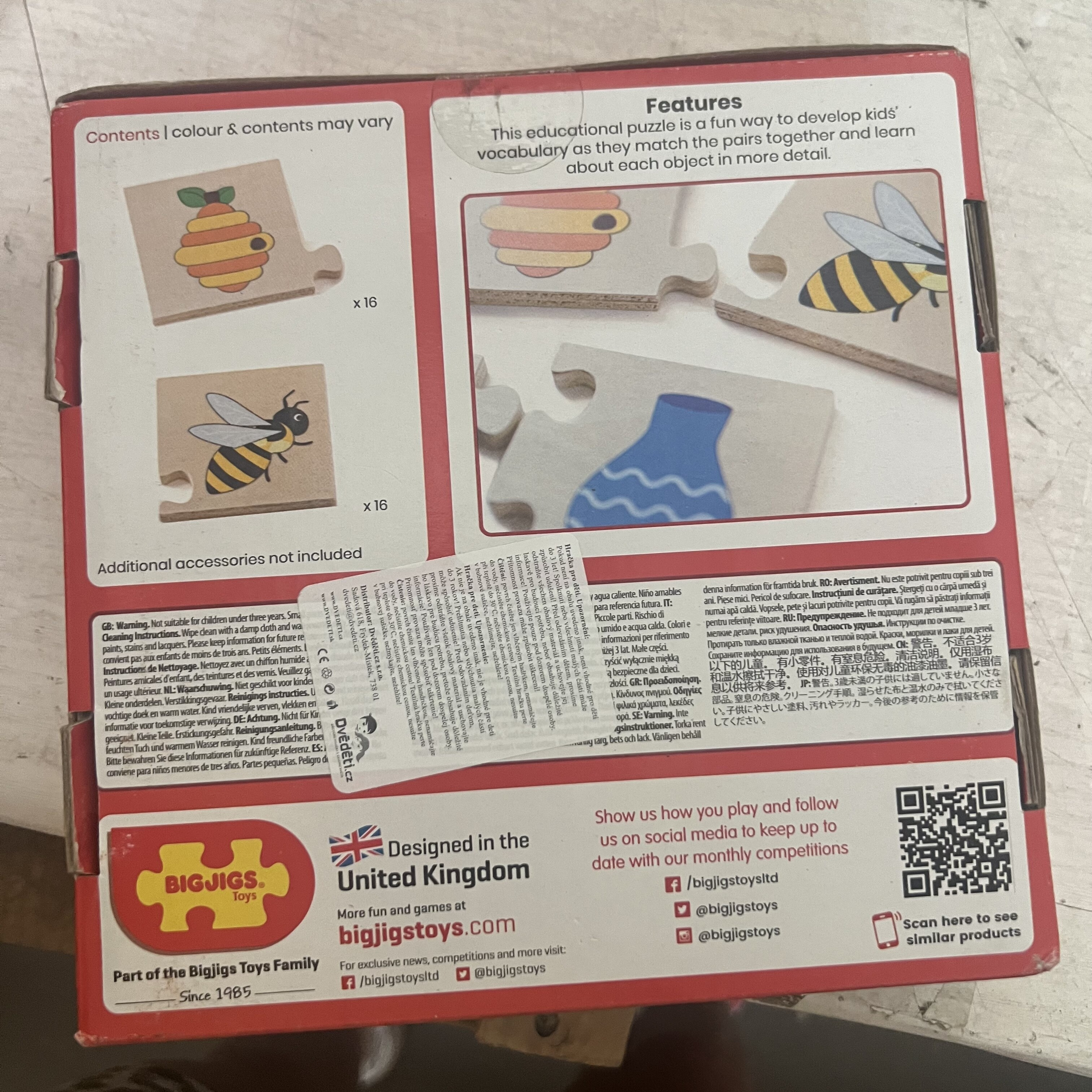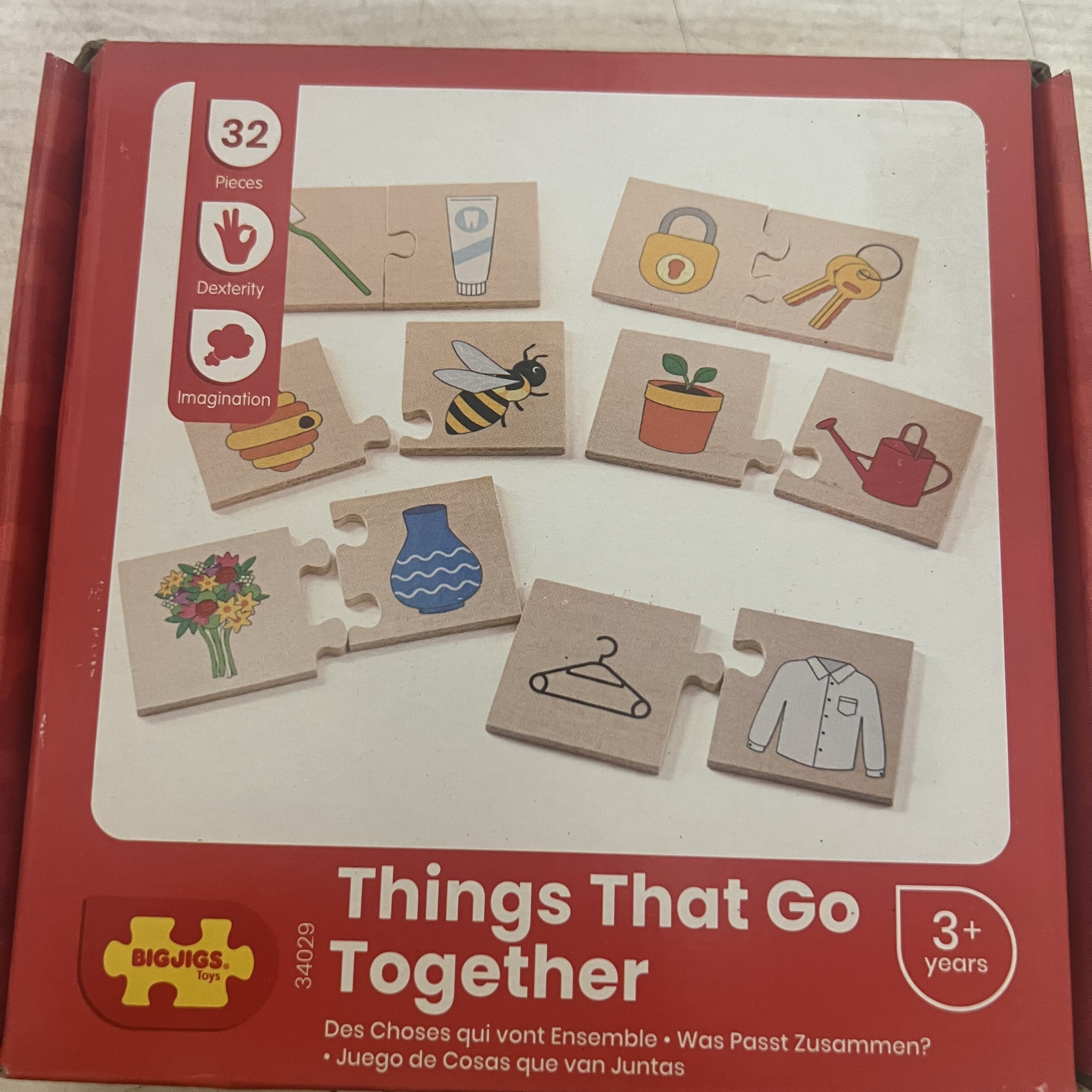 Dokážete správně poskládat dřevěné dílky puzzle? Skládačka Co k sobě patří, učí děti o různých každodenních předmětech, které k sobě patří. S čím se čmelák doplňuje? A co visací zámek?Toto vzdělávací puzzle je zábavný způsob, jak rozvíjet slovní zásobu dětí, když spojují dvojice a učí se o každém předmětu podrobněji. Hladké robustní kousky skládačky mají ideální velikost pro malé ručičky, aby je mohly uchopit, umístit a prozkoumat.Vyrobeno z prvotřídního, zodpovědně získaného dřeva a barveno netoxickými barvami a laky. Splňuje aktuální evropské bezpečnostní normy. Vyrobeno z vysoce kvalitních, zodpovědně získaných materiálů.