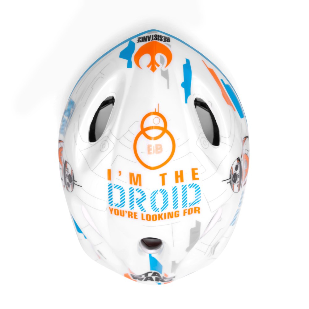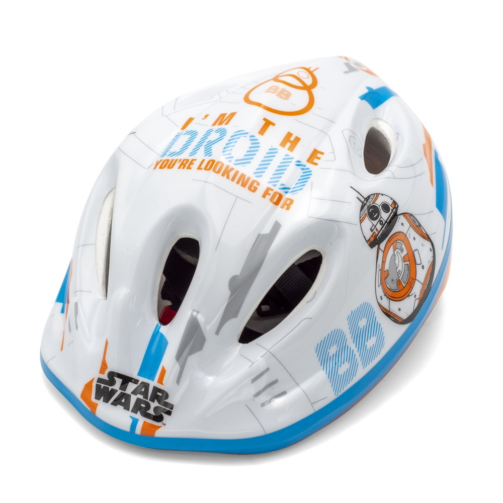 Přilba je doporučena pro děti při používání kol, bruslí, koloběžek atd. Vnější část helmy je vyrobena z PVC a zdobena postavami ze Star Wars, vnitřní část je vyrobena z náraz pohlcující pěny EPS. Helma je vybavena nastavovacím knoflíkem pro přizpůsobení helmy hlavě dítěte, popruhy na obou stranách se zapínají pod bradou pomocí přezky s měkkou podložkou. V plášti helmy jsou ventilační otvory.