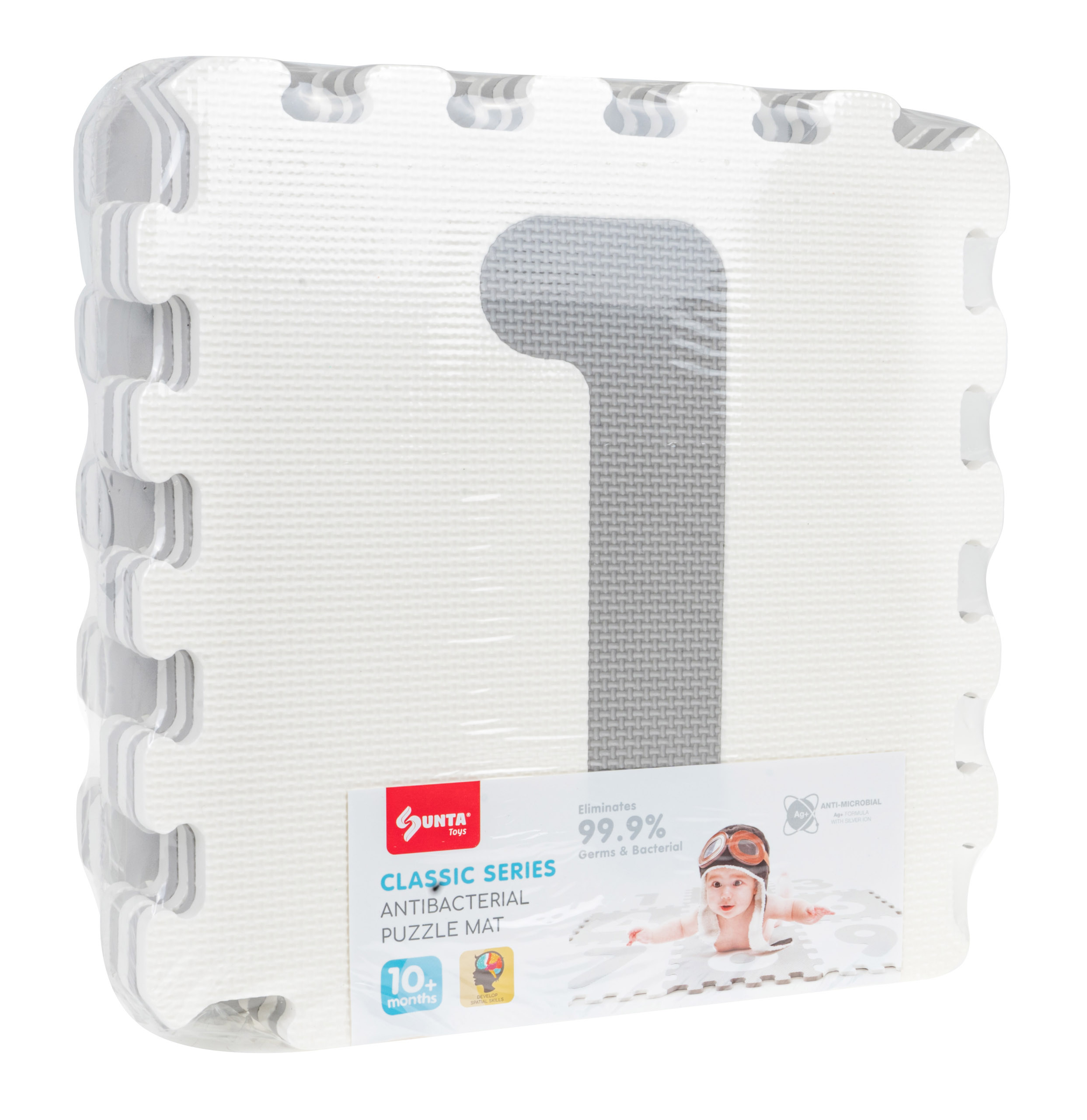 Tato vzdělávací antibakteriální pěnová podložka s čísly je vhodná pro batolata od 10 měsíců. Skládačka je vyrobena z antibakteriálního materiálu obsahujícího ionty stříbra, které zabraňují ulpívání bakterií na povrchu podložky. Složení Ag+ s ionty stříbra eliminuje 99,9 % bakterií a zárodků. Pro zajištění čistoty stačí každý kus otřít vlhkým hadříkem.