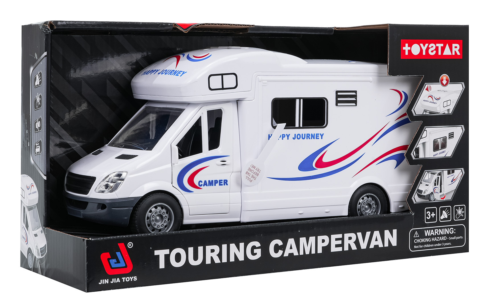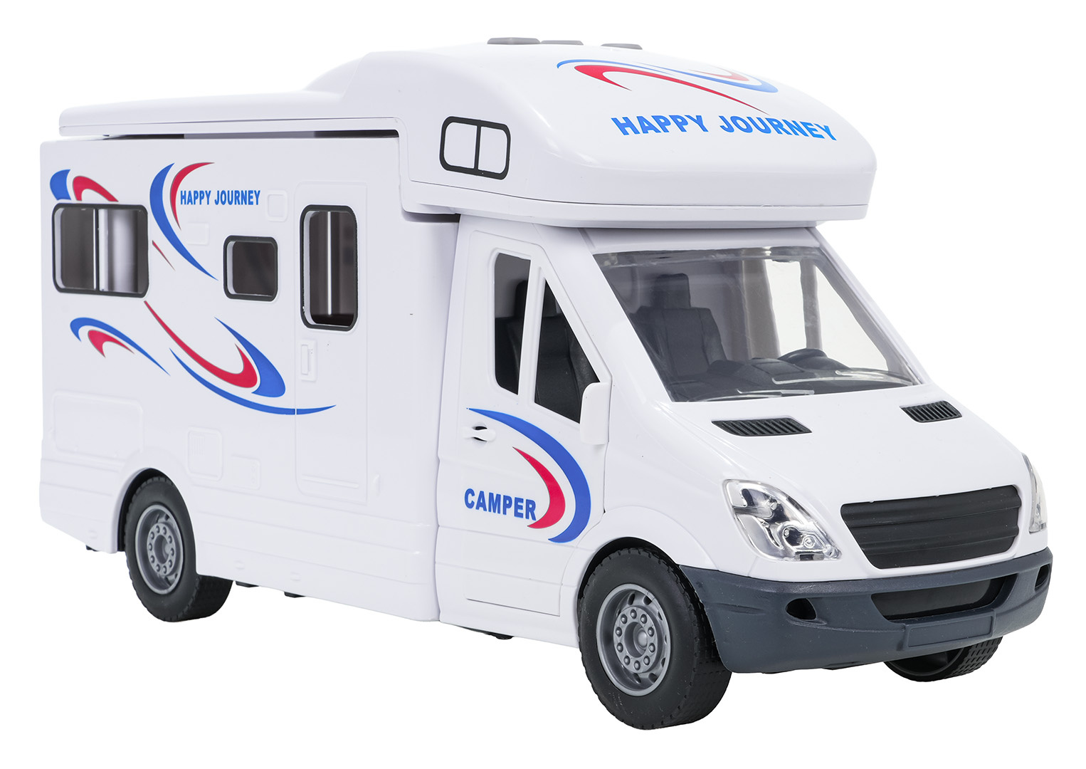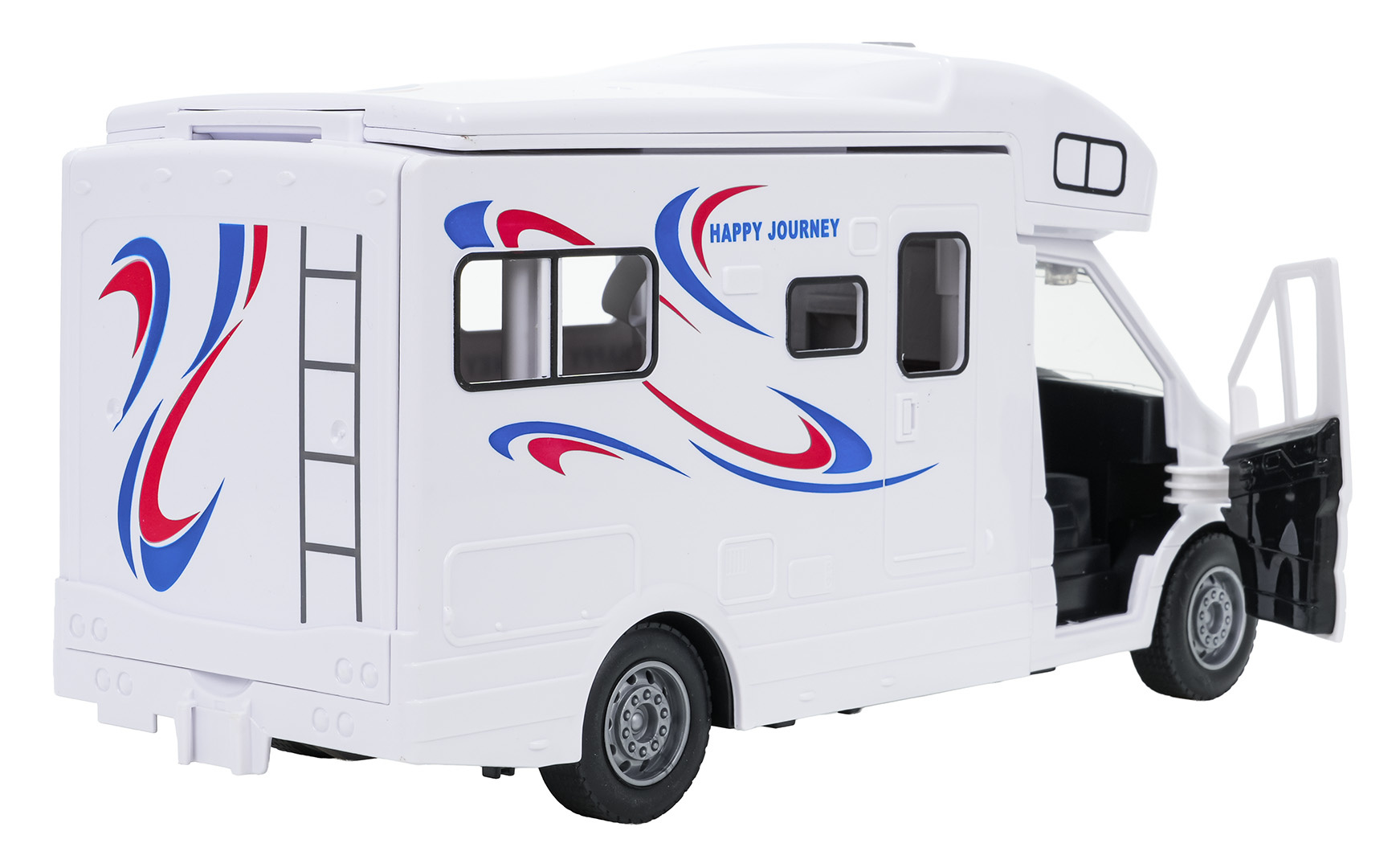 Interaktivní karavan s funkcí zvuku a světla a otevíracími dveřmi pro děti od 3 let. Hračka je vyrobena z nejkvalitnějšího plastu a je bezpečná pro děti. Karavan má otevírací boční, zadní dveře a střechu, snadno se pohybuje po povrchu díky gumovým kolům a pohonu power friction. Karavan má vnitřní osvětlení vozidla a na střeše je hudební panel s realistickými zvuky klaksonu a jízdy. Hračka je napájena bateriemi typu 2 x AA 1,5V (v balení).