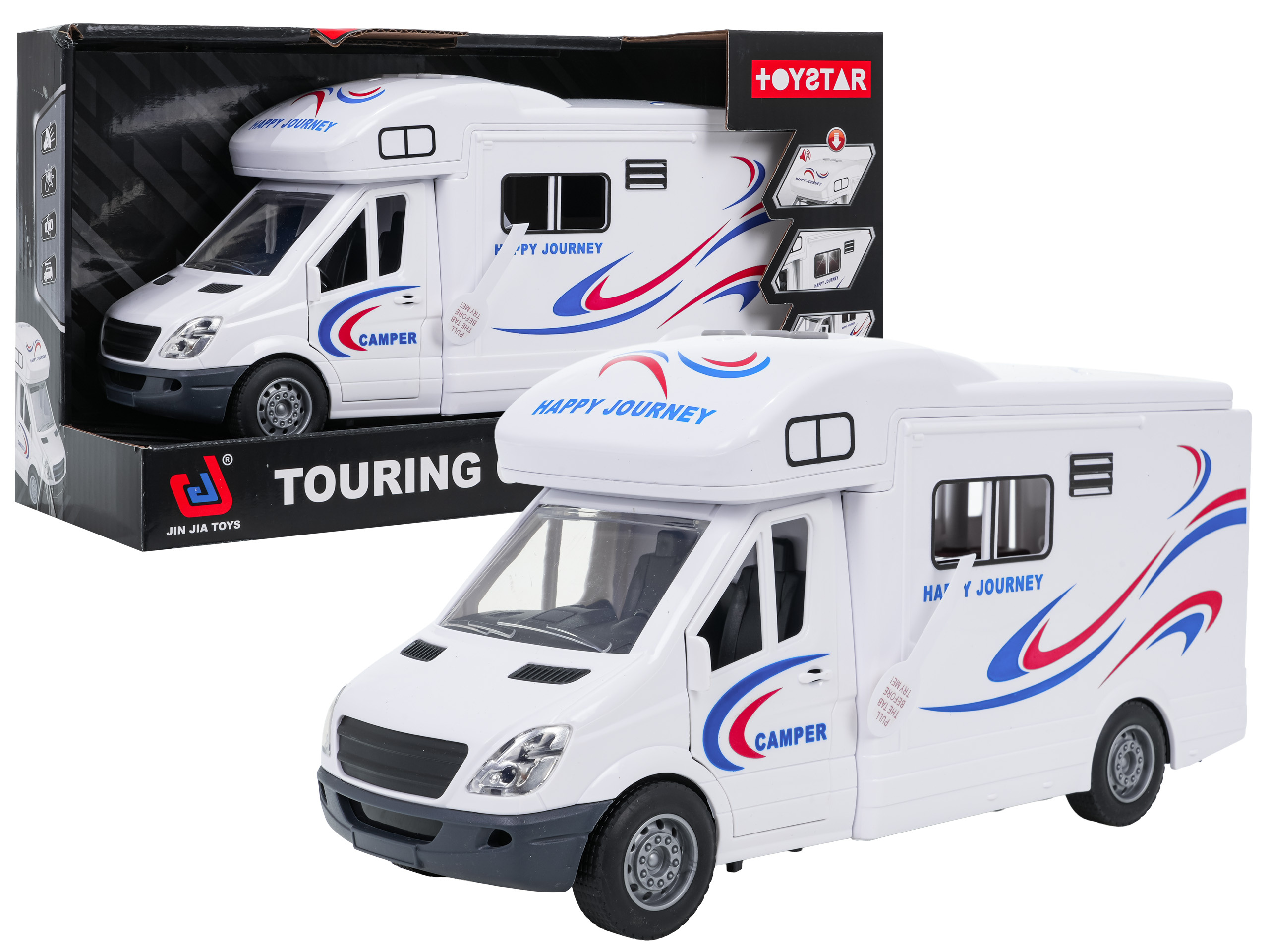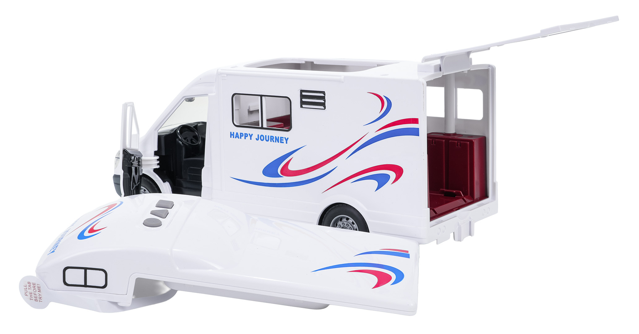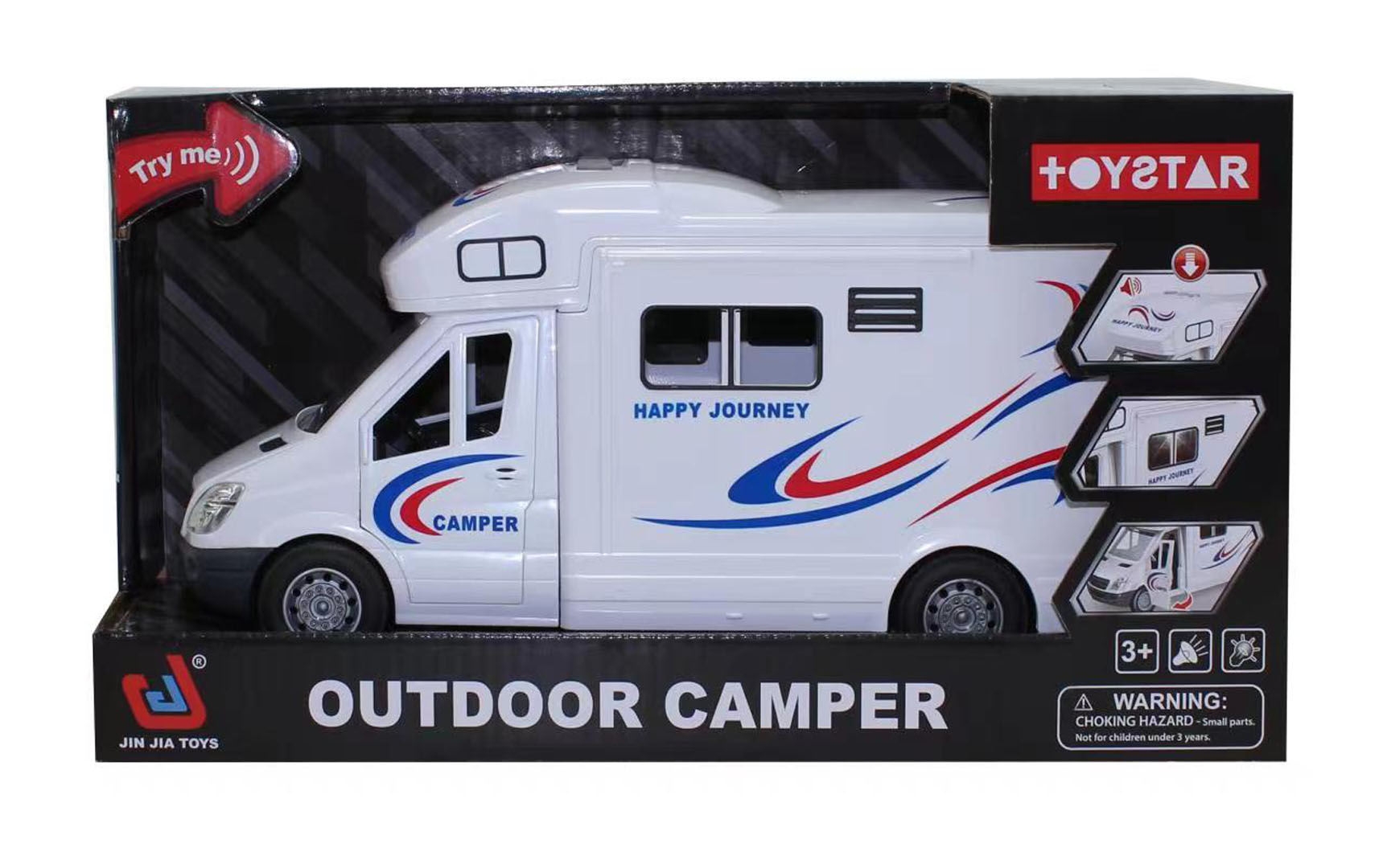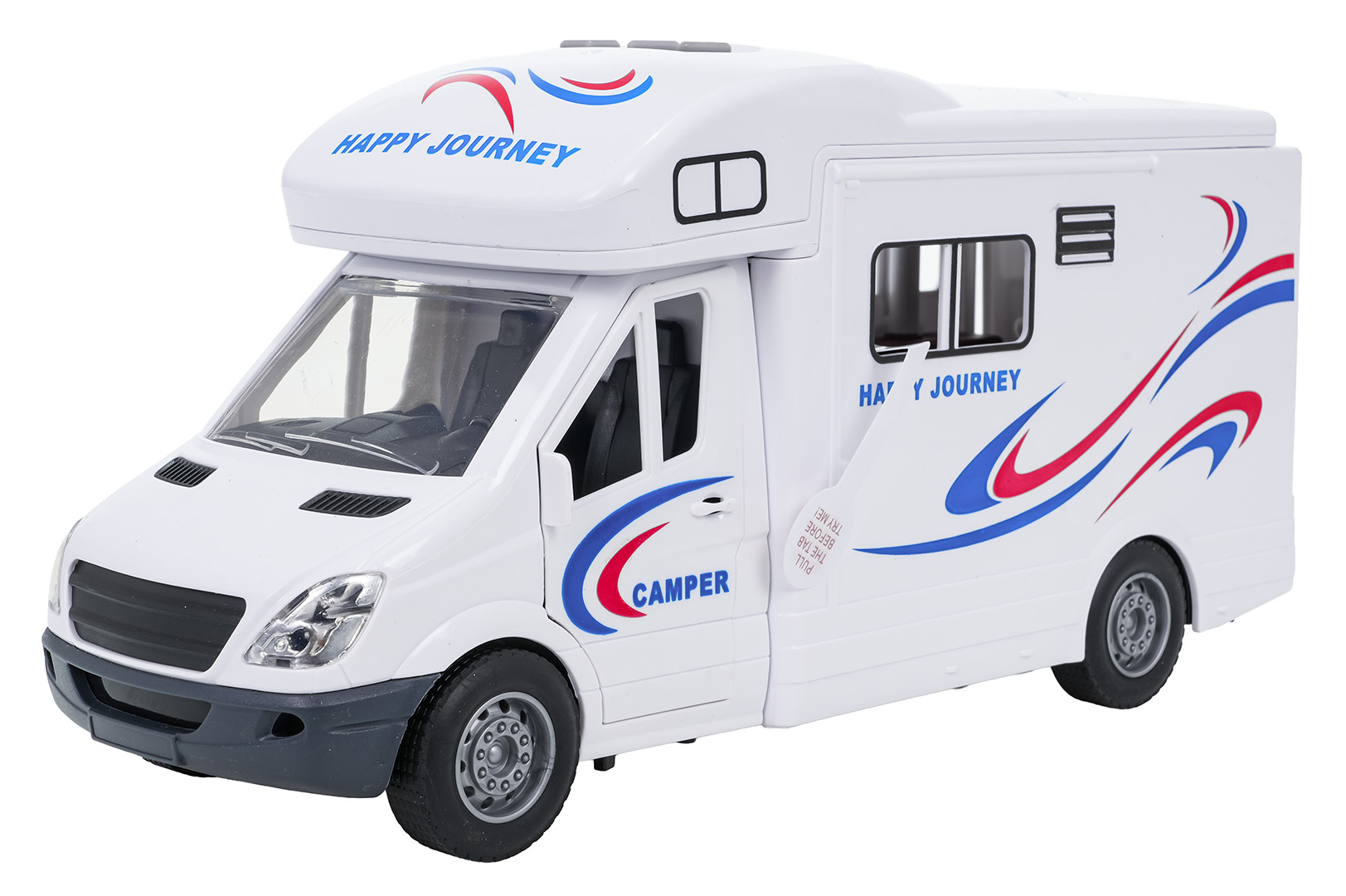 Interaktivní karavan s funkcí zvuku a světla a otevíracími dveřmi pro děti od 3 let. Hračka je vyrobena z nejkvalitnějšího plastu a je bezpečná pro děti. Karavan má otevírací boční, zadní dveře a střechu, snadno se pohybuje po povrchu díky gumovým kolům a pohonu power friction. Karavan má vnitřní osvětlení vozidla a na střeše je hudební panel s realistickými zvuky klaksonu a jízdy. Hračka je napájena bateriemi typu 2 x AA 1,5V (v balení).
