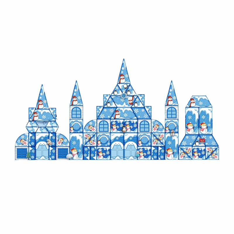 Sada Ledový Zámek je kreativní hračka skládající se z 96 prvků, která umožňuje dětem stavět zimní zámky a fantastické stavby z magnetických kostek. V sadě se nacházejí různé tvary magnetických destiček s roztomilými potisky tučňáků, sněhuláků a okének. To je skvělý způsob, jak rozvíjet prostorovou představivost, manuální dovednosti a logické myšlení v pohádkové, ledové scenérii.