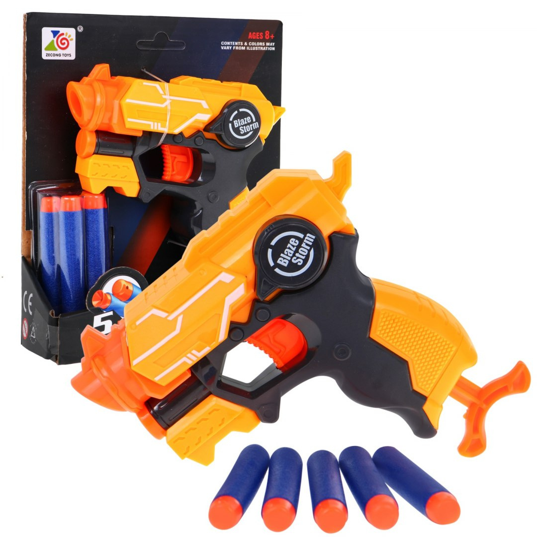Blaze Storm je kompaktní, snadno použitelná pistole. Hračka nevyžaduje baterie. Stačí vložit náboj do hlavně, natáhnout páčku dolů a stisknout spoušť. Šípy jsou z měkké pěny s gumovým hrotem a létají velmi daleko. Díky malým rozměrům lze zbraň vzít doslova kamkoli.