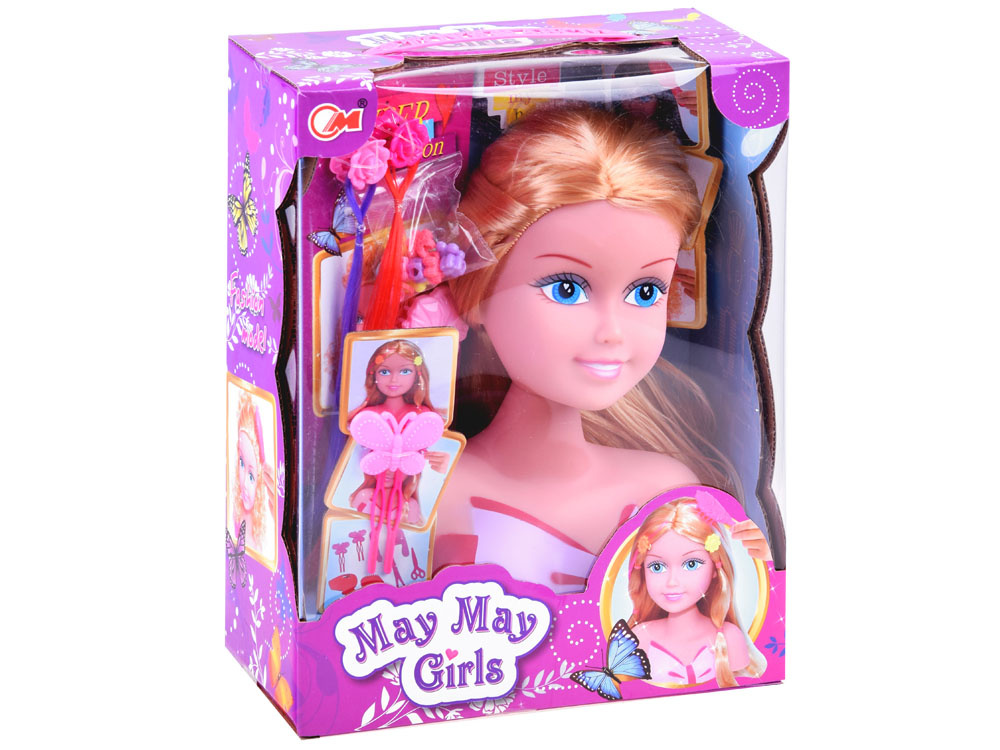Blonďatá hlava se bude dobře hodit v každém domácím kadeřnictví k nácviku úpravy vlasů.