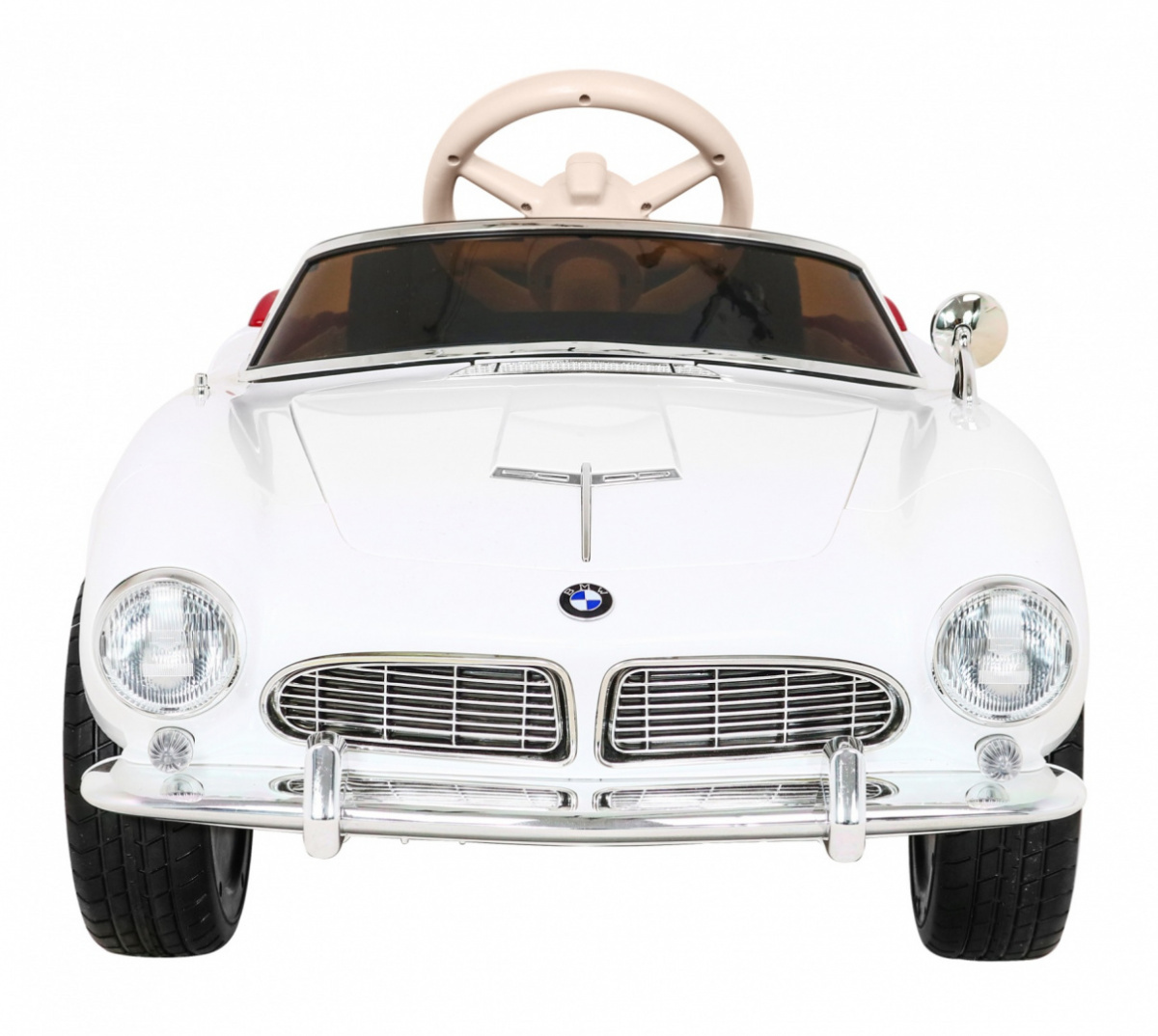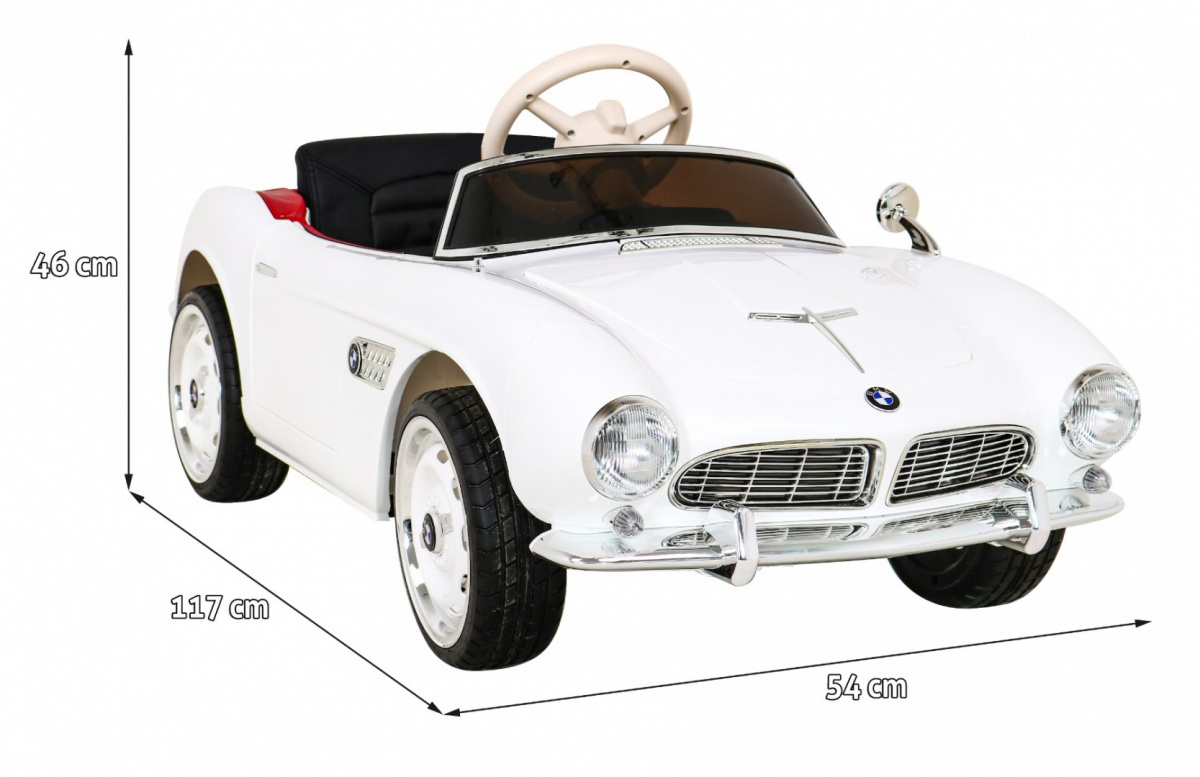 BMW 507 Retro dětské elektrické auto bílé + LED audio + dálkové ovládání + eko kůže + EVA + pomalý start