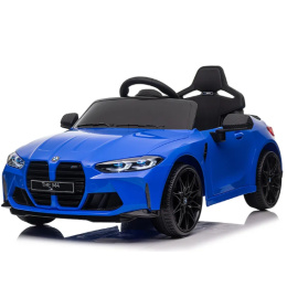 Sportovní dětský kabriolet na akumulátor dálkově ovládaný na pilota CABRIO BMW m4 HUDBA + KLAXON + ZÁSUVKA MP3 + PILOT 2.4G LICENCE BMW PĚNOVÁ KOLA EVA, Měkká Sedačka z Ekokůže Rozměry autíčka: 110x70x50 cm BARVA MODRÁ