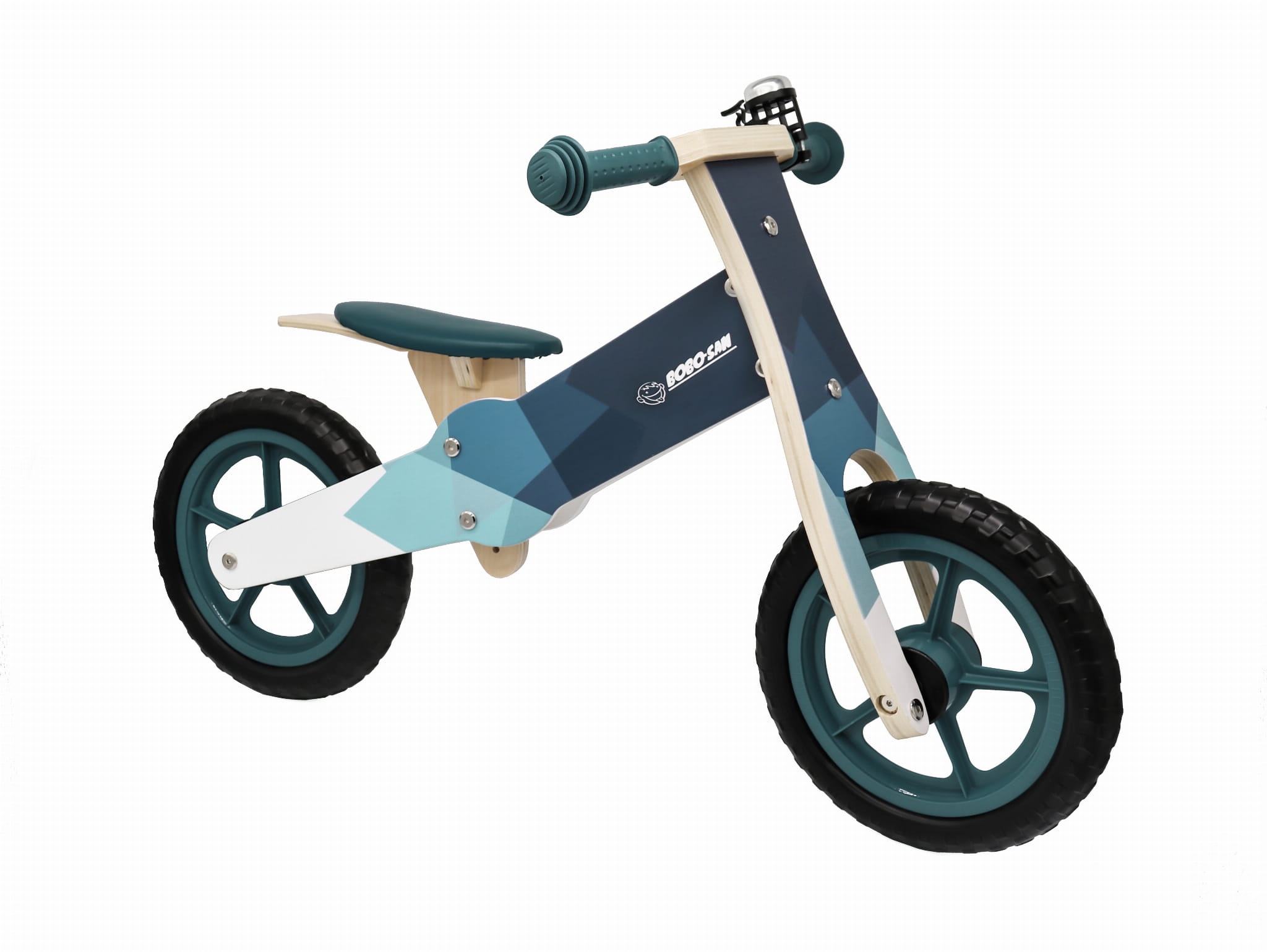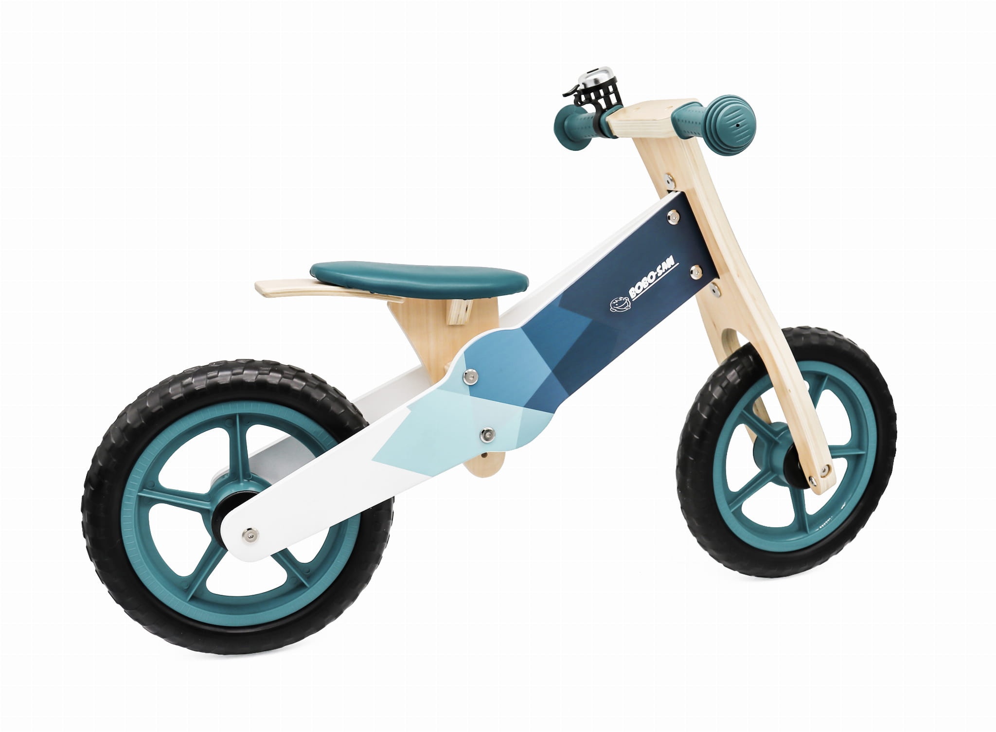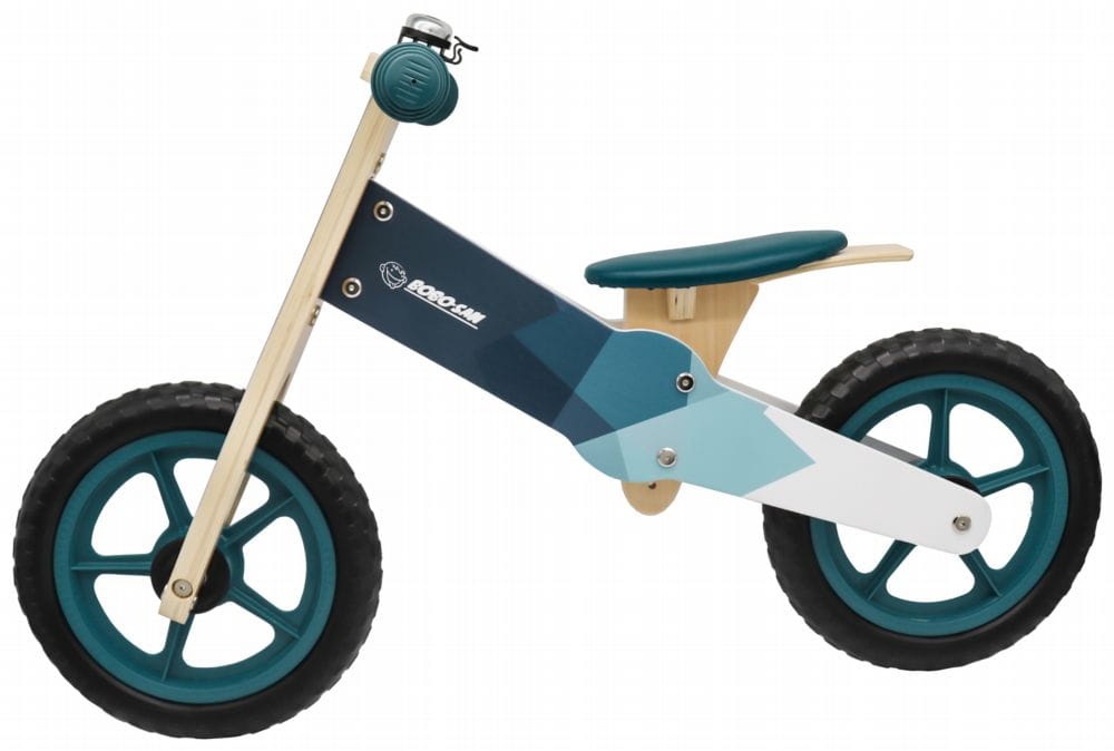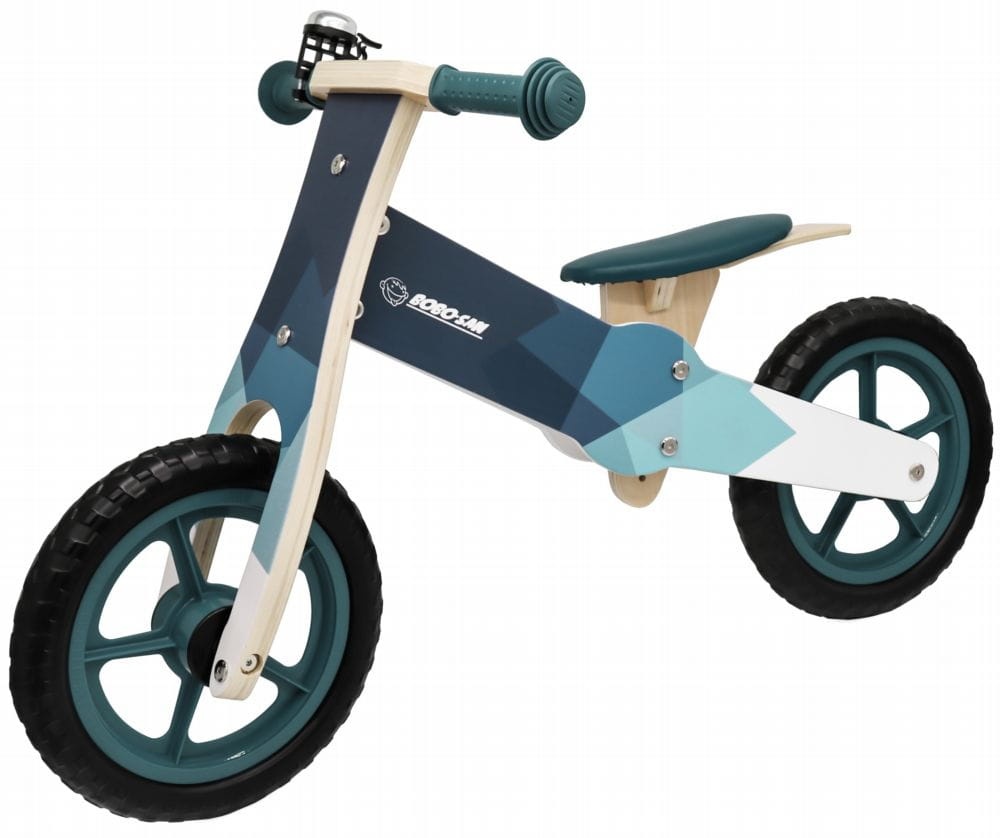 Dětské dřevěné odrážedlo, se zatáčecími řídítky, ergonomicky tvarovaným a výškově nastavitelným sedátkem.