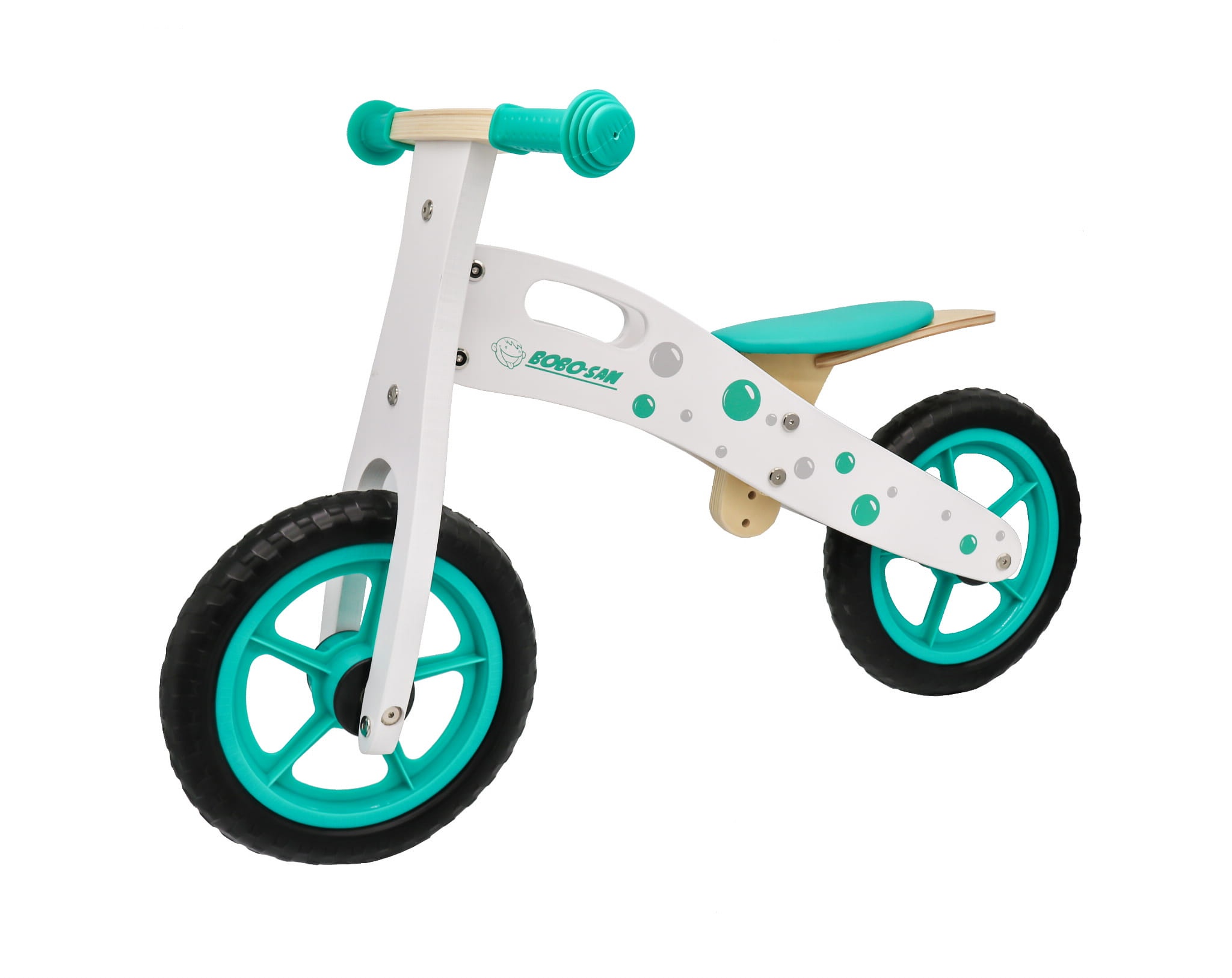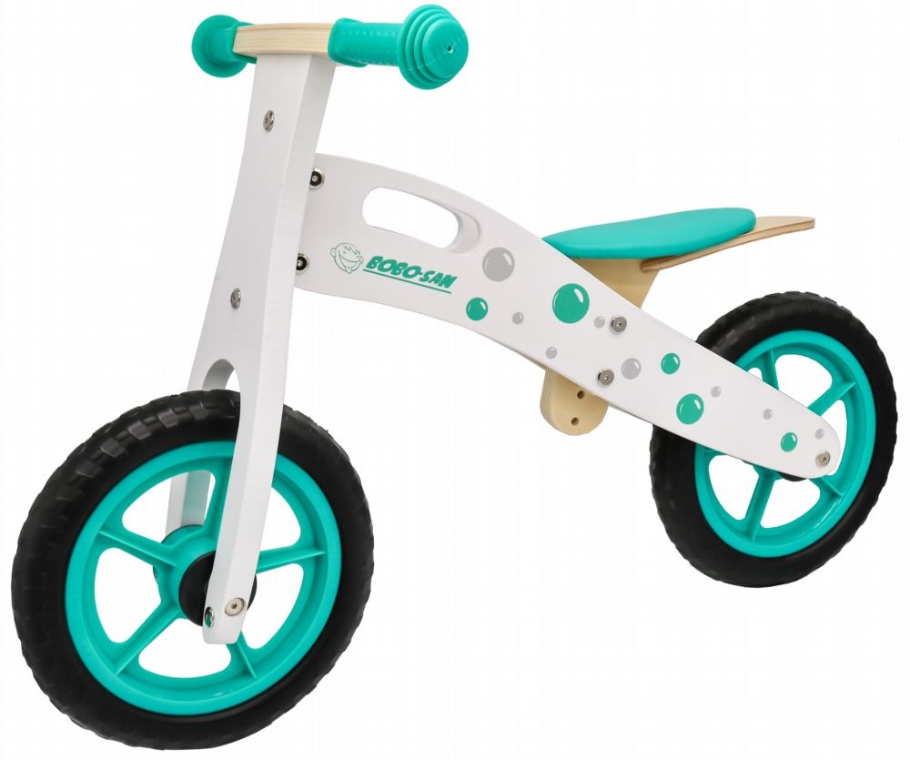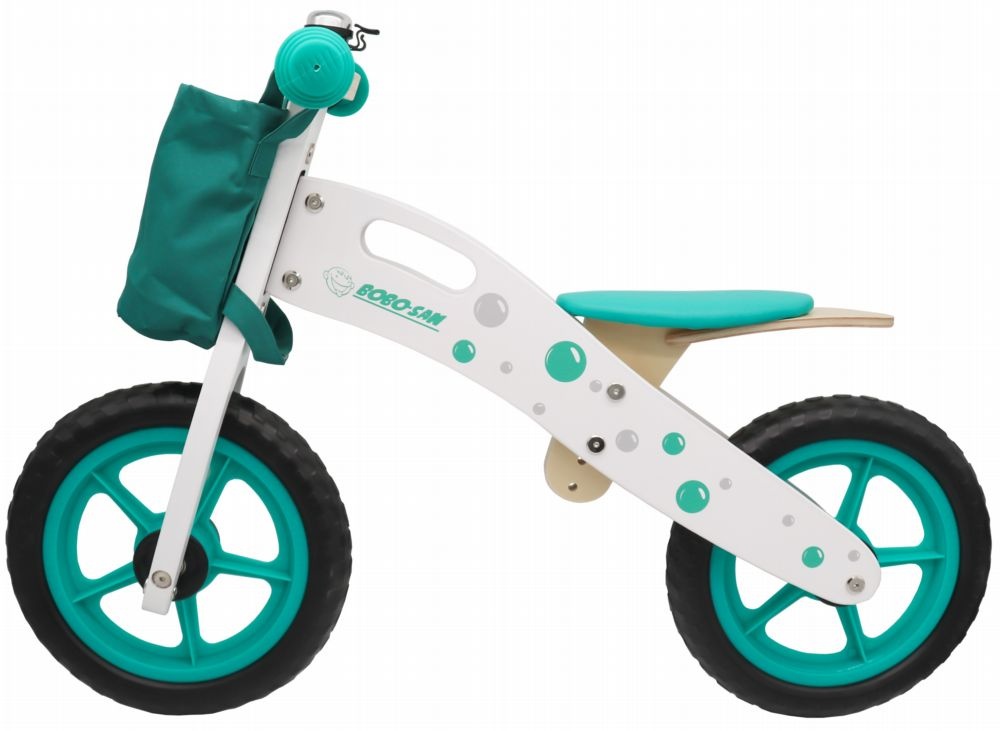 Dětské dřevěné odrážedlo, se zatáčecími řídítky, ergonomicky tvarovaným a výškově nastavitelným sedátkem.