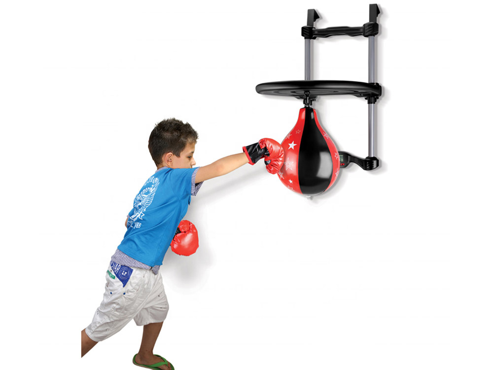 Závěsná dětská boxovací hruška je skvělým nápadem pro zavedení pohybu do domácnosti. Hračku lze zavěsit pomocí speciálních háčků a přísavek na dveře (bez použití nářadí). Sada má možnost nastavení výšky, takže ji lze snadno přizpůsobit výšce malého hráče v rozmezí 50 cm shora dolů.