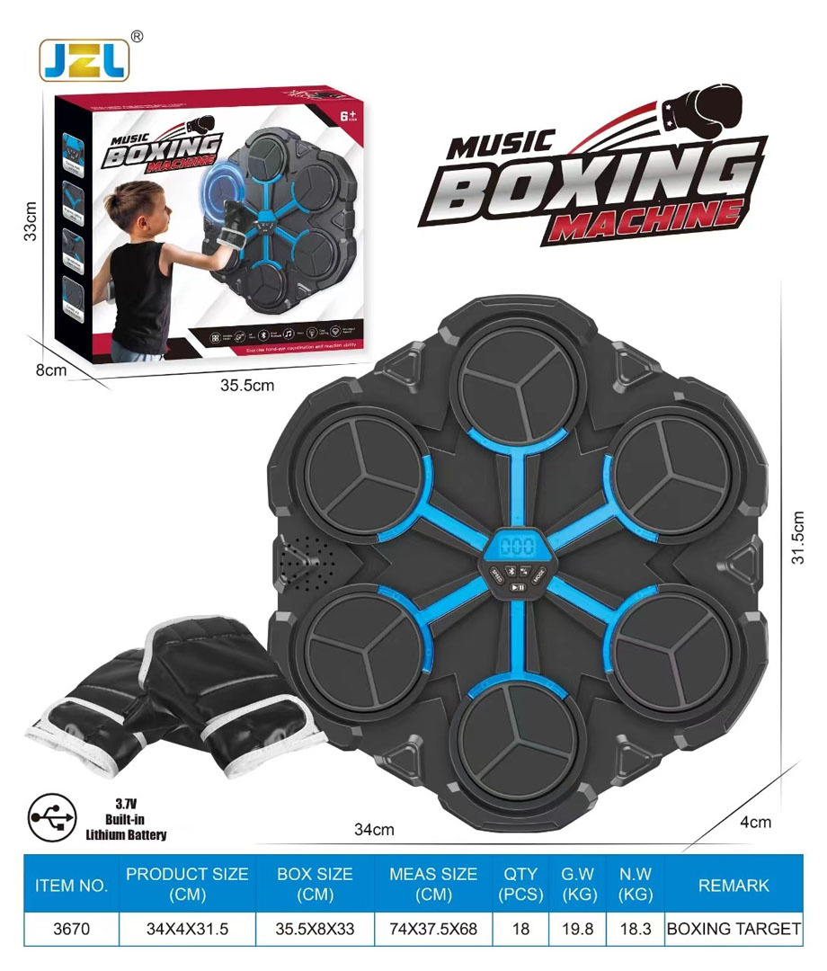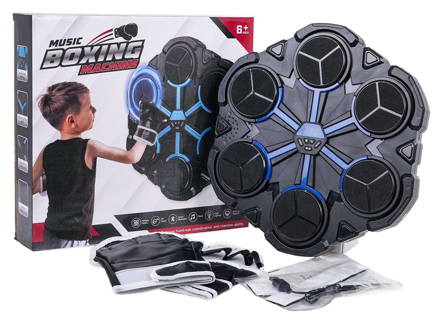 Boxerská tabule s funkcí zvuku a světla pro děti od šesti let. Stůl spojuje trénink se zábavou. Stačí ji namontovat na libovolné místo, nasadit rukavice a aktivně trávit čas. Díky připojení Bluetooth můžete cvičit v rytmu oblíbené hudby. LED displej umístěný uprostřed tabule zobrazuje body, můžeme vybrat rychlost a režim hry. Stůl je ideální jak pro začátečníky, tak pro pokročilé. Sada zlepší reflexy, pohybovou koordinaci a výkonnost. Tabulka je napájena akumulátorem 3,7 V (v balení).