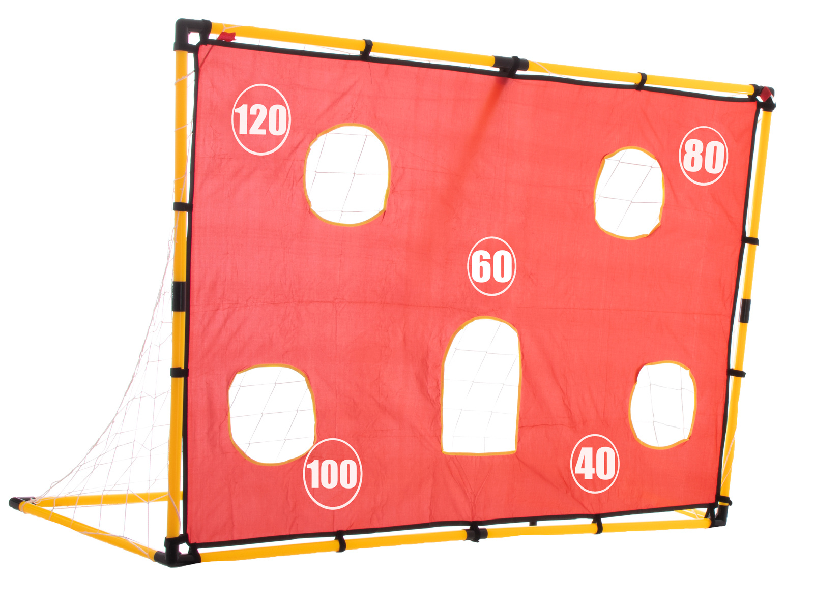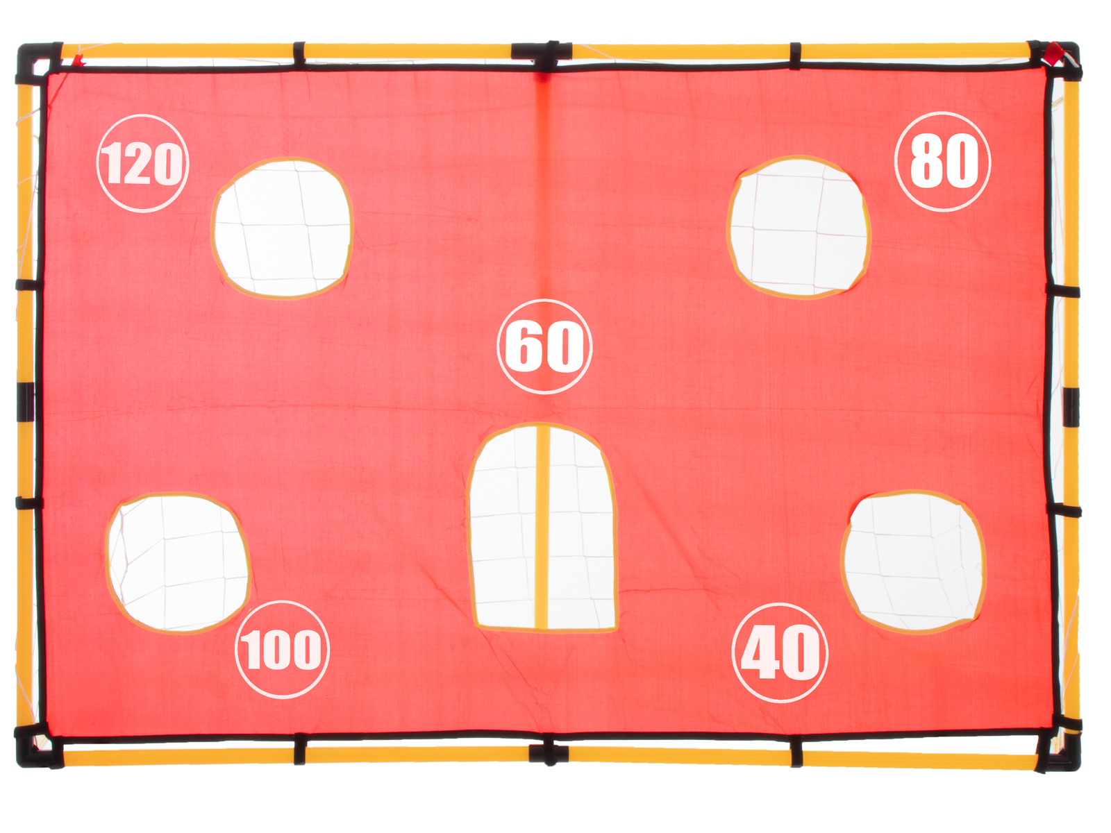 Velká branka s podložkou, ve které jsou vyříznuté otvory, vám umožní trénovat přesné střely na branku bez nutnosti zapojení brankáře.