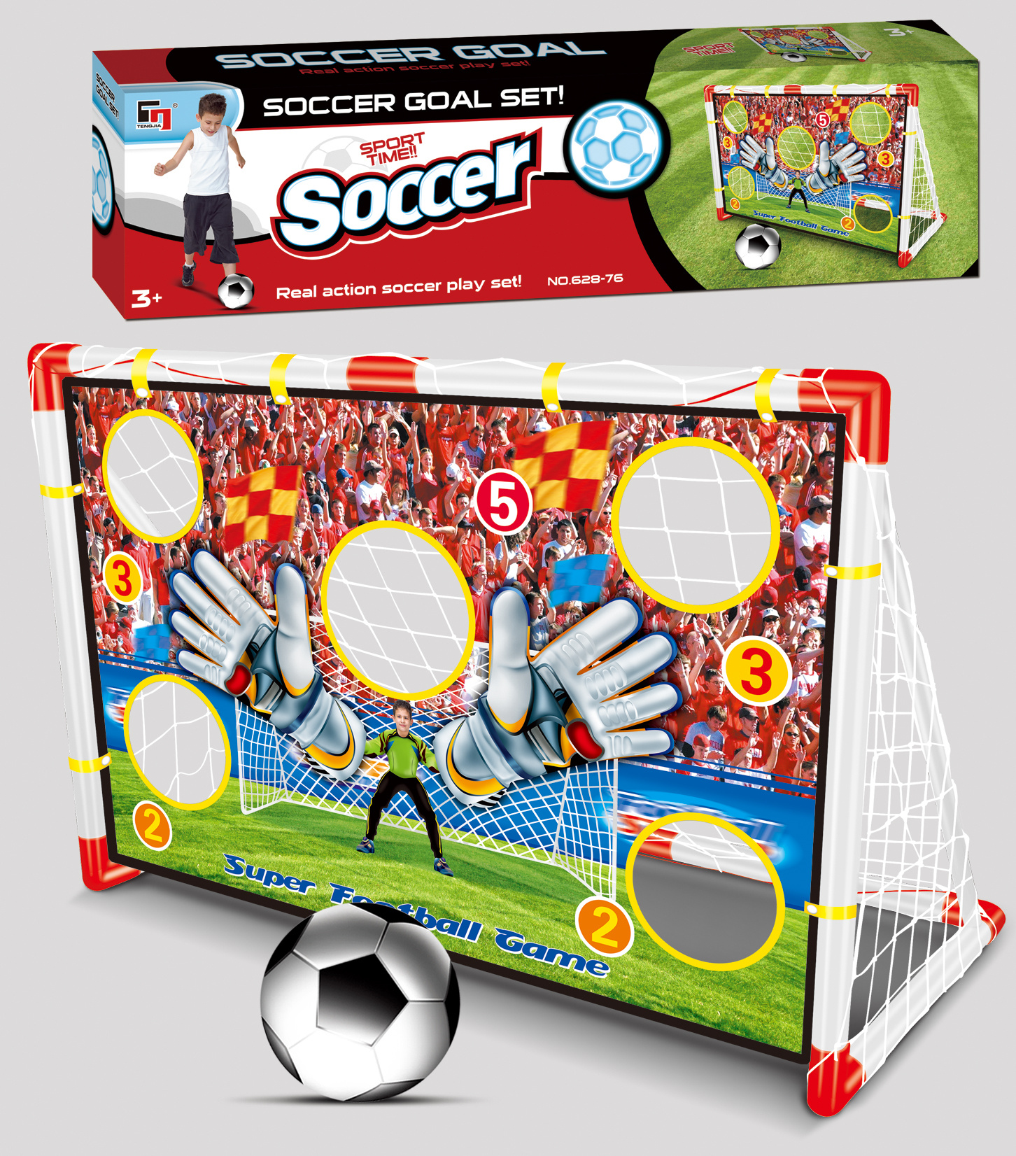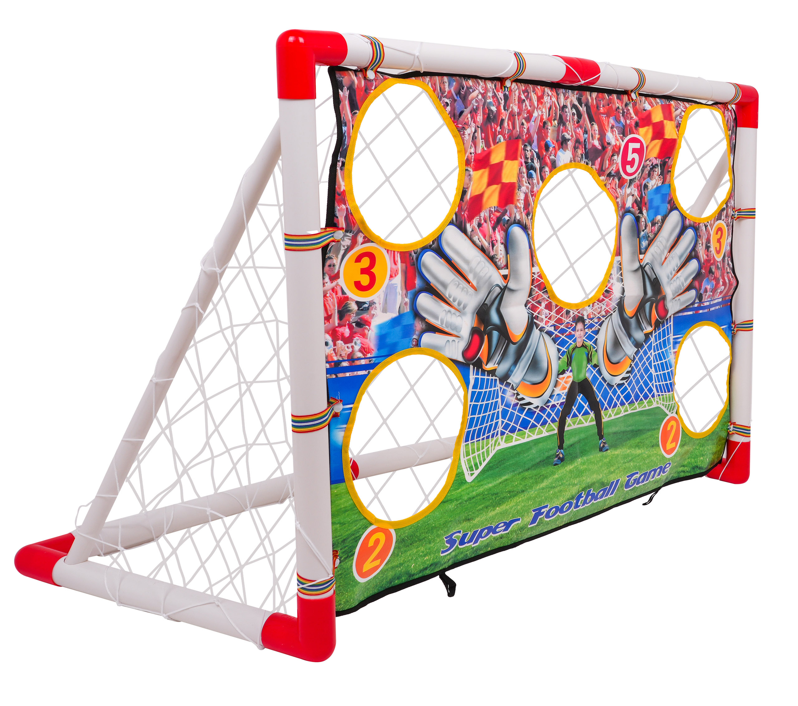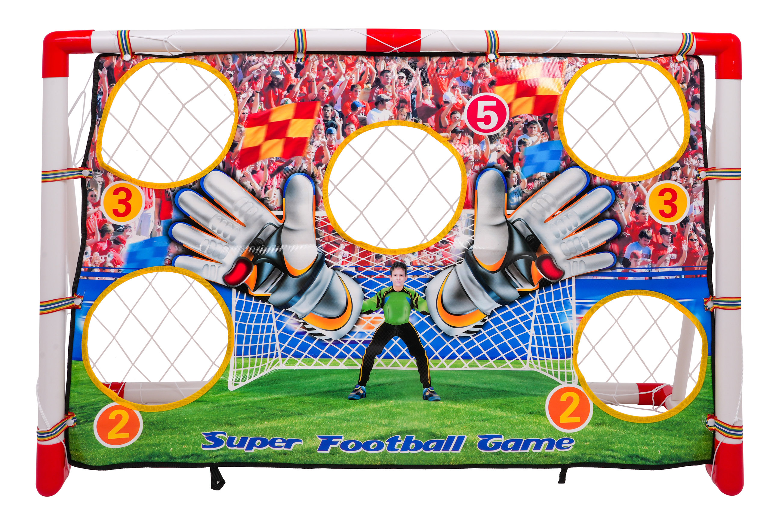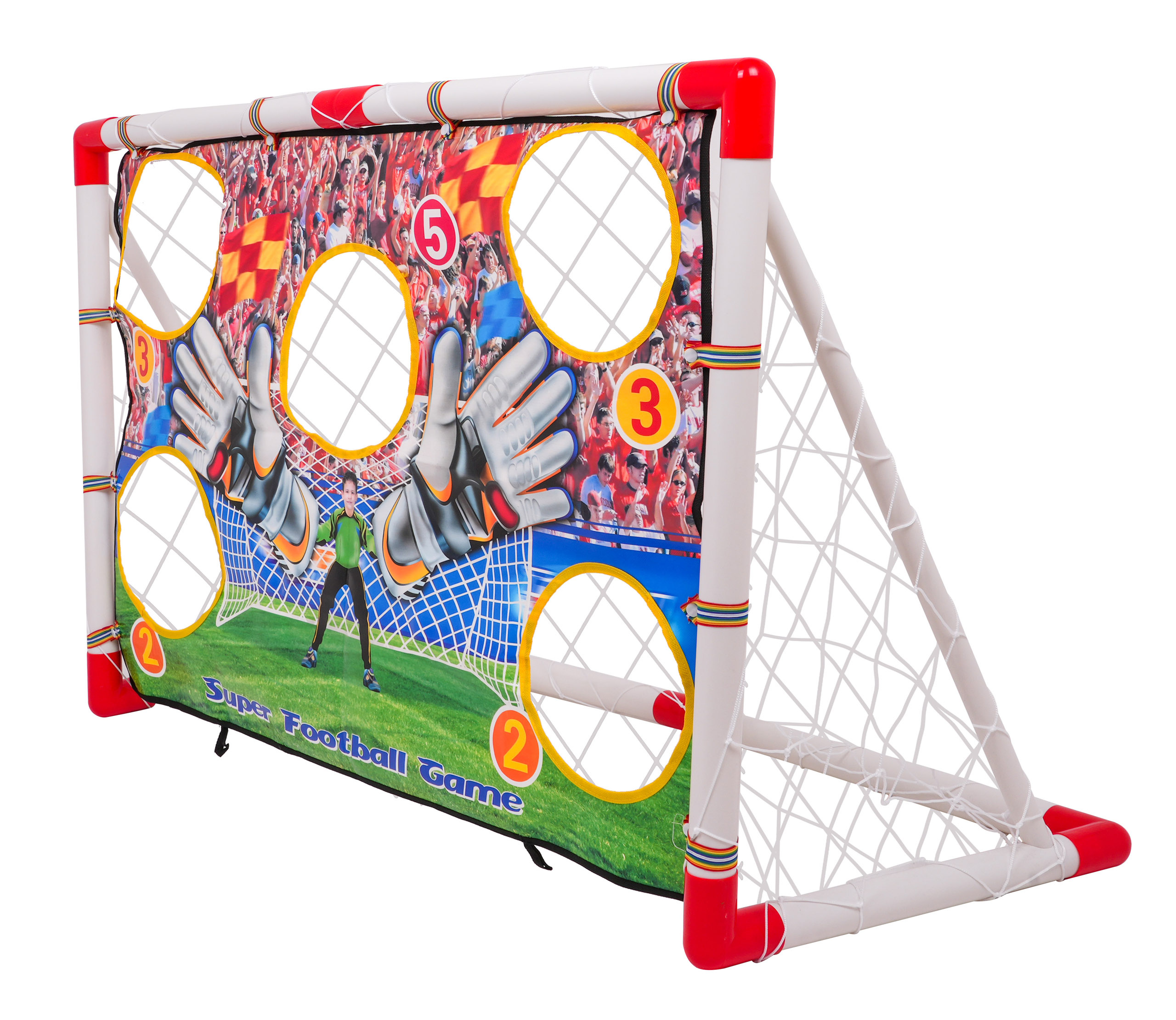 Branka s podložkou pro trénink střelby na cíl pro děti od 3 let. Na podložce jsou jamky označené body; když hráč zasáhne určitou jamku, získá přidělený počet bodů. Podložku pro cvičný terč lze kdykoli rychle odstranit.
