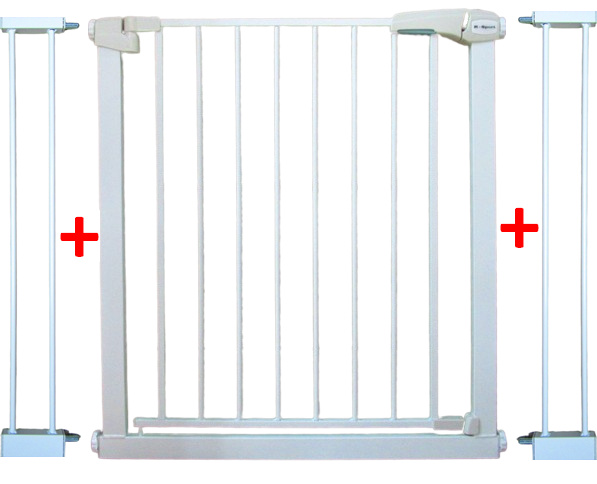 Technická specifikace: branka vyrobená z kovu, práškově lakovaná, značka R-sport, nastavitelná šířka umožňující montáž v různých otvorech, upevnění rozpěrným způsobem - jednoduchá montáž spočívající v zašroubování a nastavení rozpěrných šroubů, otevírání na obě strany, snadné automatické zavírání, dvojitá blokace otevírání - dodatečné zabezpečení při otevření (je třeba stisknout tlačítko v zámku a navíc lehce zvednout dveře), účinně blokuje přístup k nebezpečným místům, obsahuje 2 rozšíření Sada obsahuje branku s dveřmi a zámkem, 2 rozšíření, 2 kovové prodlužovací prvky a 4 šrouby s plastovými maticemi a silikonovými krytkami.