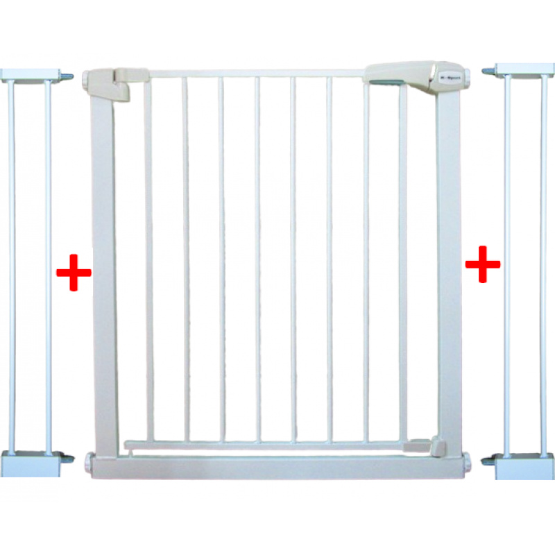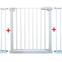 Rozměry: výška: 78 cm, šířka branky s rozšířeními (bez šroubů) - 91,5 cm montážní otvor: 79-105 cm montážní otvor s rozšířeními: 100-105 cm minimální šířka montážního otvoru (branka se šrouby) - 79 cm, minimální šířka montážního otvoru (branka se šrouby) s rozšířeními - 100 cm, maximální šířka montážního otvoru (branka se šrouby) - 105 cm šířka rozšiřujících prvků: 10,5 cm (dva prvky, každý po 10,5 cm) počet rozšiřujících prvků: 2 výška dveří: 71,5 cm, šířka dveří: cca. 58 cm, 4 montážní šrouby se silikonovými krytkami, hmotnost: 5/5,5 kg, Díky možnosti rozšíření a montážnímu systému lze branku přizpůsobit průchodům o rozměrech od 79 cm do 105 cm. Rozšíření můžeš namontovat na libovolnou stranu. Můžeš namontovat jedno rozšíření nebo  nemontovat žádné.