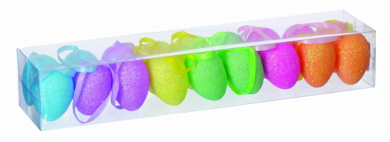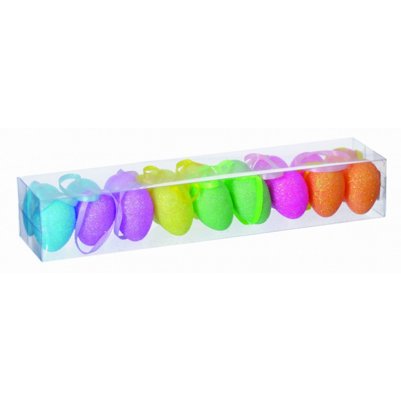 Vyrobené z lehkého polystyrenu, pokryté třpytkami, dodávají interiérům lesklý, jarní charakter. Díky otvoru pro zavěšení je lze snadno použít k dekoraci větví, váz, girland nebo velikonočních stromečků. Vajíčka v různých barvách přinesou do domu radostnou, sváteční atmosféru. To je skvělá volba pro ozdobení prostoru na Velikonoce nebo jiné jarní oslavy.