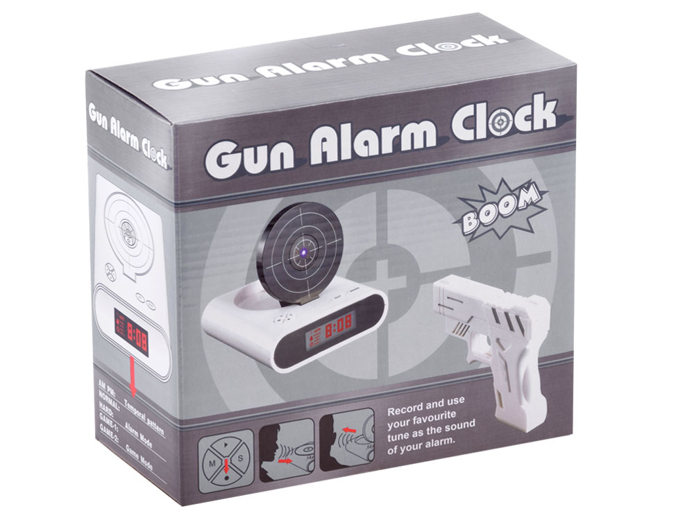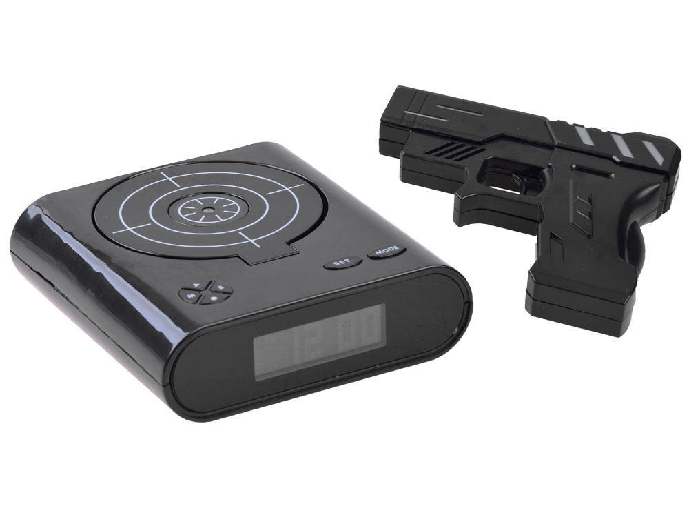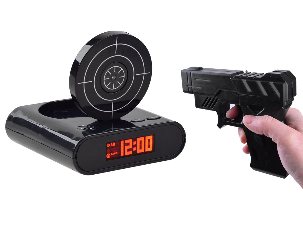 Proto je budík se zbraní skutečným hitem. Stačí namířit zbraň na cíl a budík nás přestane budit!