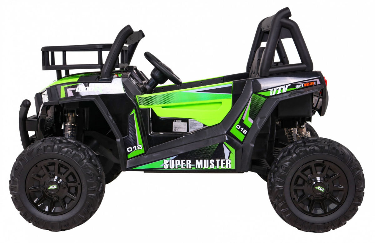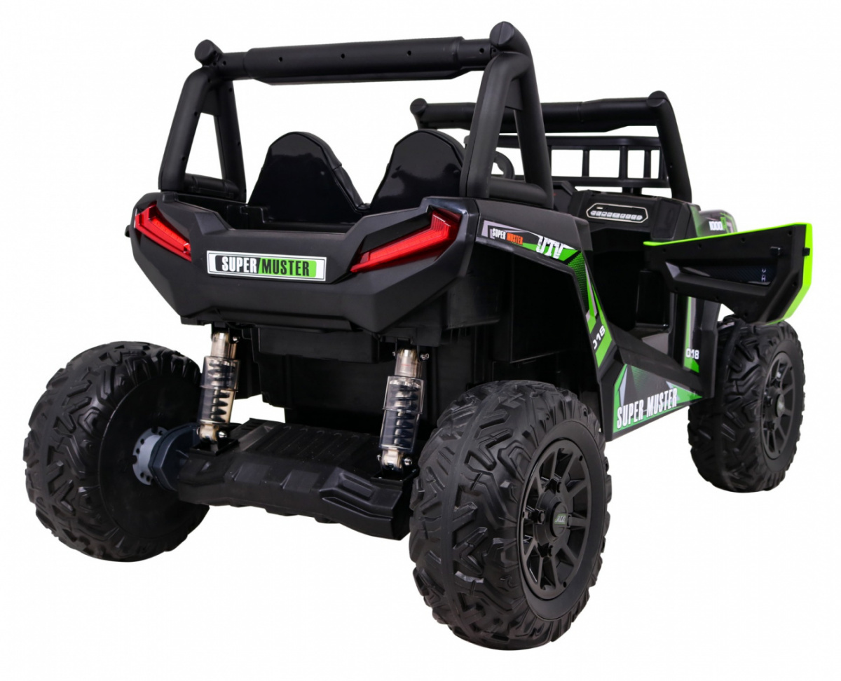 Buggy UTV Off-roader pro děti Zelená + dálkové ovládání + nosič zavazadel + pomalý start + EVA + MP3 LED
