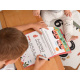 Spojování slabik do slov, luštění písmenných šifer, skládání domina a hledání písmen, z nichž se skládá jméno, to jsou jen některé z úkolů, které na předškoláky čekají. Tímto způsobem se naučí pojmenovávat hlásky, psát písmena, spojovat hlásky a symboly do slov a číst a psát je. Úkoly lze plnit opakovaně, protože zábava pokračuje donekonečna díky omyvatelným kartičkám a za sucha stíratelnému flamastru.