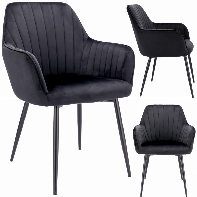 Židle z kolekce CORA Pevná, sametová židle je vybavena měkkým sedákem a vysokým opěradlem s ozdobným prošíváním. Celý kus vypadá lehce díky štíhlým černým nohám, které dodávají vizuální lehkost a zároveň zajišťují ideální stabilitu. Výška opěradla, područky a jejich měkkost činí křeslo neuvěřitelně pohodlným.