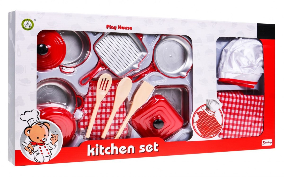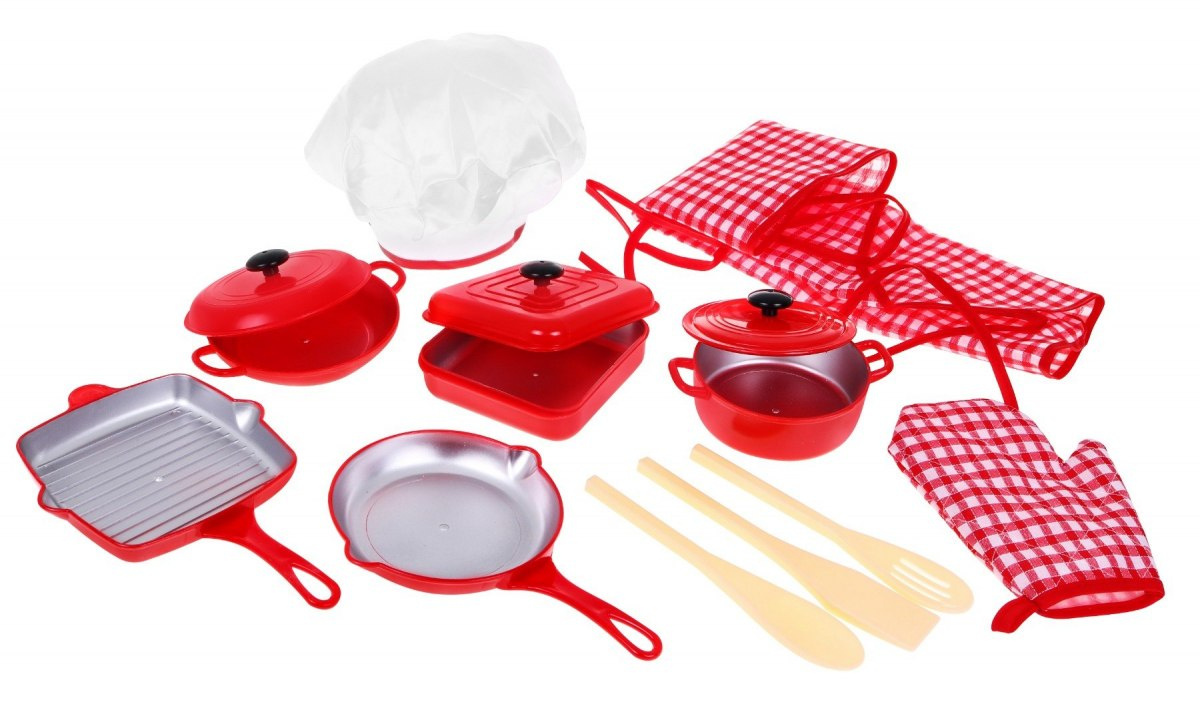 Sada obsahuje kuchyňské náčiní a další doplňky skutečného kuchaře. Jednotlivé díly sady jsou vyrobeny z vynikajících kvalitních materiálů, v realistických barvách a tvarech a mají velikost, která dokonale padne do dětských rukou.