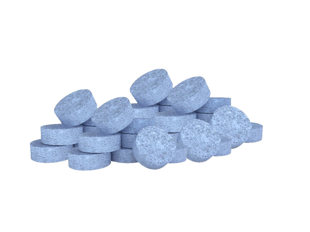 Chlorové tablety s baktericidním účinkem pro dezinfekci vody v koupalištích. Dostupné tablety 20 g.