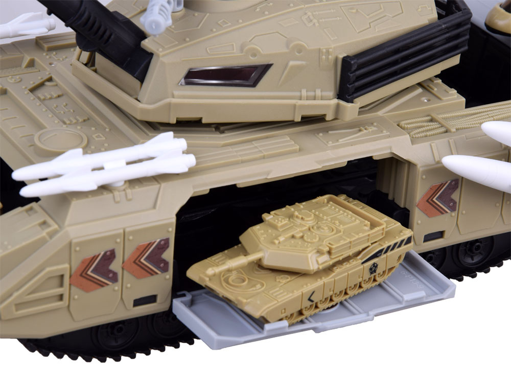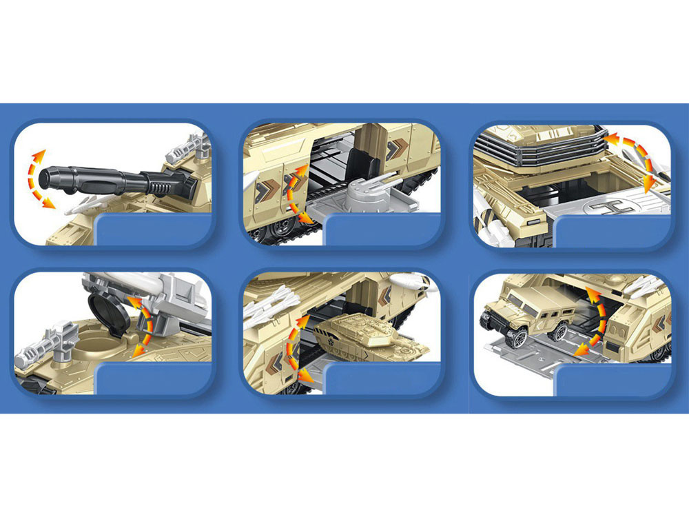 celá sada je vyrobena z plastu. Tank má uzamykatelné čtyři úložné prostory pro vozidla, vojáky nebo zbraně, kanon se otáčí o 360 stupňů.