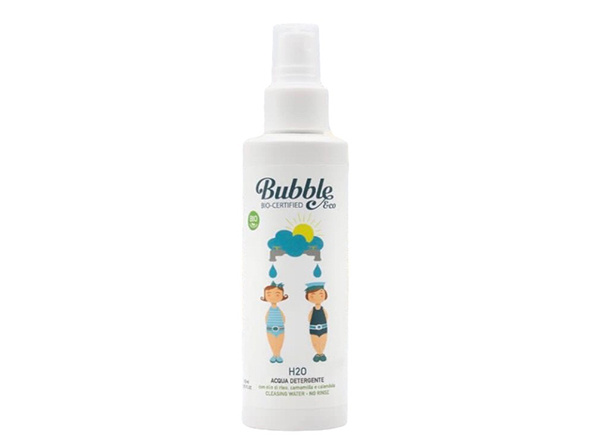 Voda na čištění Bubble&Co je jemné a zároveň všestranné řešení pro každodenní čištění a osvěžení pokožky dětí a kojenců. Produkt je založen výhradně na čisté organické šťávě z aloe, pšeničných proteinech, rýžovém oleji, výtažcích z heřmánku, měsíčku a slézu. Očišťuje eliminací nečistot a zároveň působí změkčujícím, hydratačním a zklidňujícím účinkem. Lze jím čistit celé tělo, ruce, obličej, nohy a také intimní oblasti dítěte bez nutnosti oplachování. Voda na čištění pleti Bubble&Co se velmi rychle vstřebává a zanechává na pokožce pocit příjemného osvěžení. Má jemnou, nedráždivou vůni. .