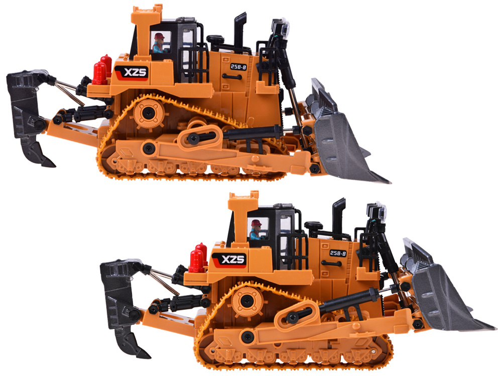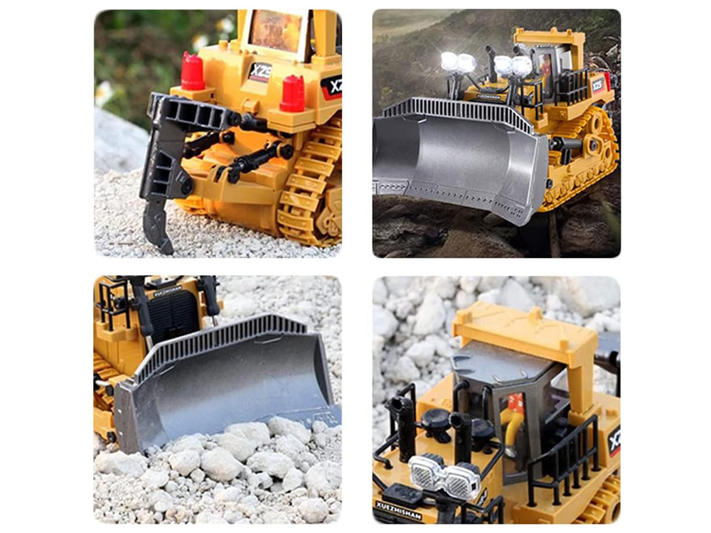 Buldozer byl pečlivě vyroben s důrazem na detail. Korba buldozeru je vyrobena z vysoce kvalitního plastu odolného proti poškození. Gumové pásy zlepšují přilnavost vozidla.Pluh a hák na kypření půdy jsou vyrobeny z kovu, díky čemuž je hračka robustnější.