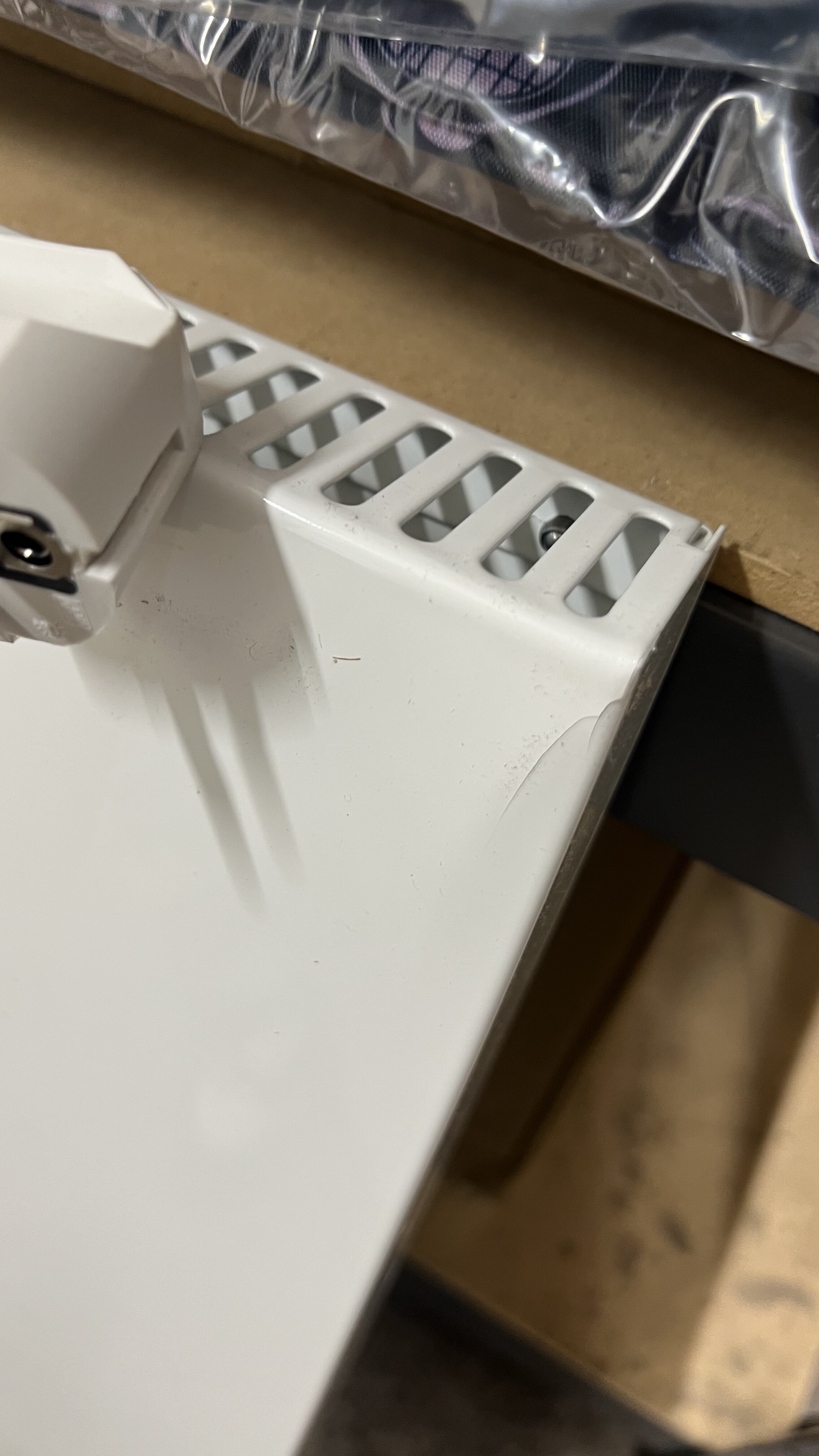 Konvektor má poškozené roky, poškrábaný lak.