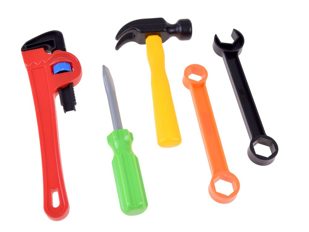Bloky a nástroje jsou vyrobeny výhradně z plastu.