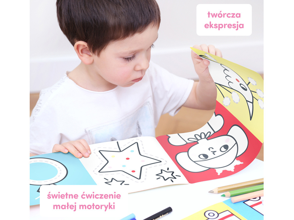Tříleté dítě si procvičuje stále přesnější pohyby rukou a kreslení po stopách je skvělým cvičením motoriky. Vybarvování a kreslení detailů je jednou z fází tvůrčí cesty, která vás dokonale připraví na budoucí hodiny psaní. Oblíbená témata a zábavné úkoly podněcují děti k zakreslování tvarů a kreslení stále detailnějších prvků. Je to přirozený úvod do výuky psaní a také způsob tvůrčího vyjádření. Ujistěte se, že dítě drží pastelku správně v ruce. Pojmenujte barvy, postavy a předměty na ilustracích. Popusťte uzdu své fantazii! Díky praktickému formátu omalovánek je můžete mít vždy u sebe. To je vynikající nápad na malý dárek pro dítě.