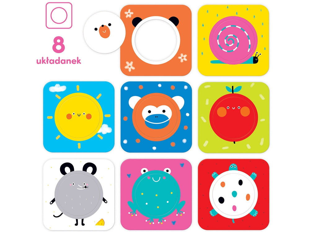 Vzdělávací sada se bude hodit jako první puzzle pro batolata. Skládá se z velkých desek s odnímatelnými kruhy. Zábava spočívá právě v jejich porovnávání. Kola můžete libovolně vyměňovat, což přispívá k zábavě. Barevné ilustrace a formu puzzle jsme přizpůsobili věku batolat. Skládačky jsou vynikající, všestranně rozvíjející zábava.