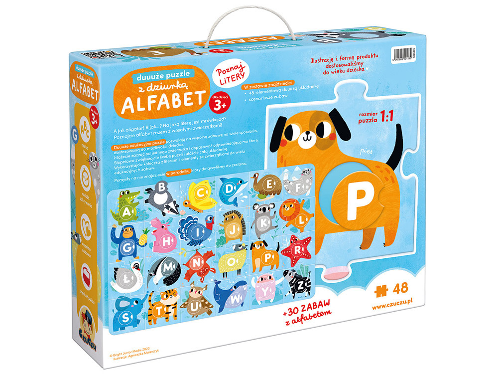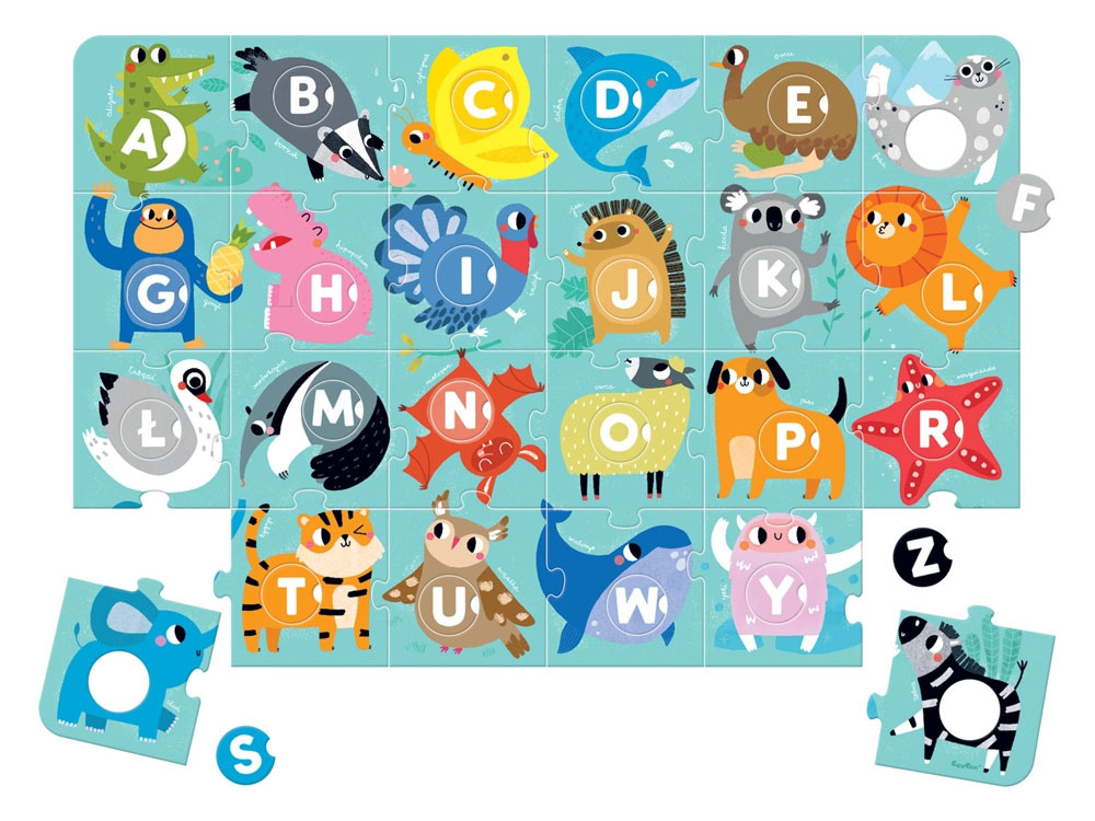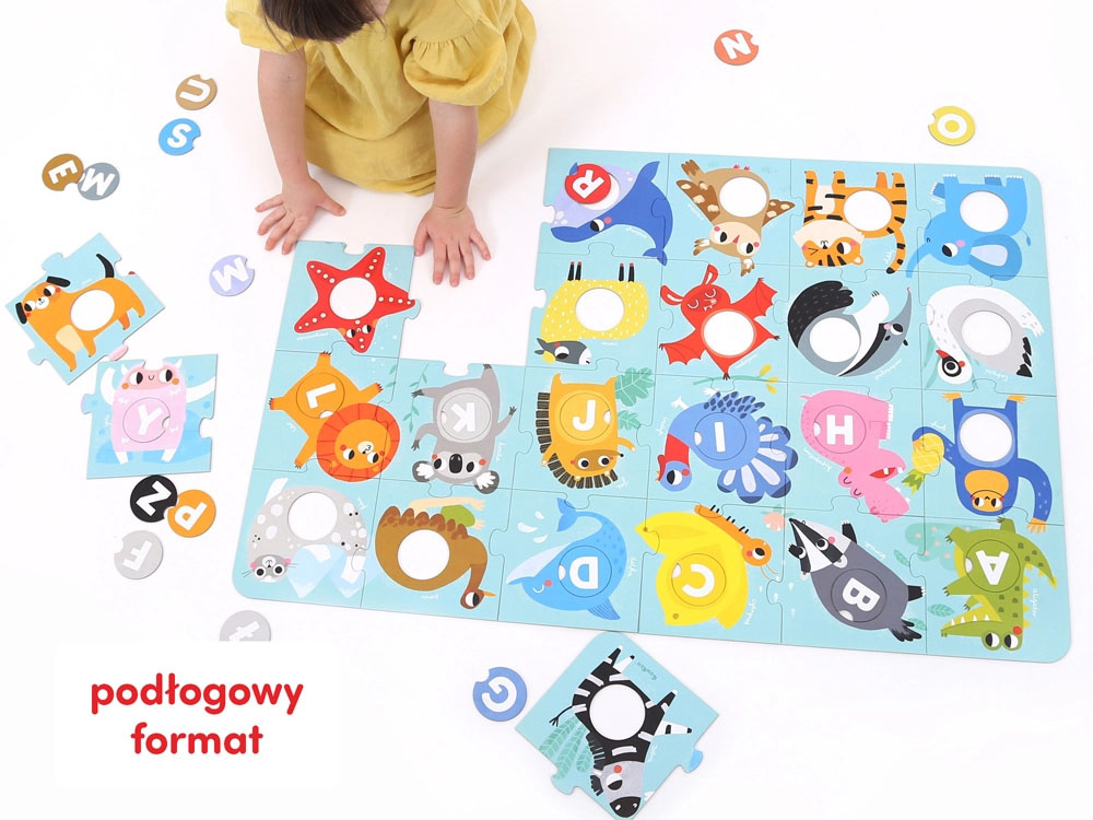 Puzzle je obrovské, úžasně barevné a krásně ilustrované. Inspiruje ke zkoumání písmen a umožňuje mnoho všestranně rozvíjejících aktivit. Skládání puzzle je jen jednou z nich. Přiložená příručka je plná nápadů na vzdělávací hry, které jsou přizpůsobeny věku a schopnostem dítěte. Puzzle jsou ideální jak pro domácí použití, tak pro mateřskou školu.