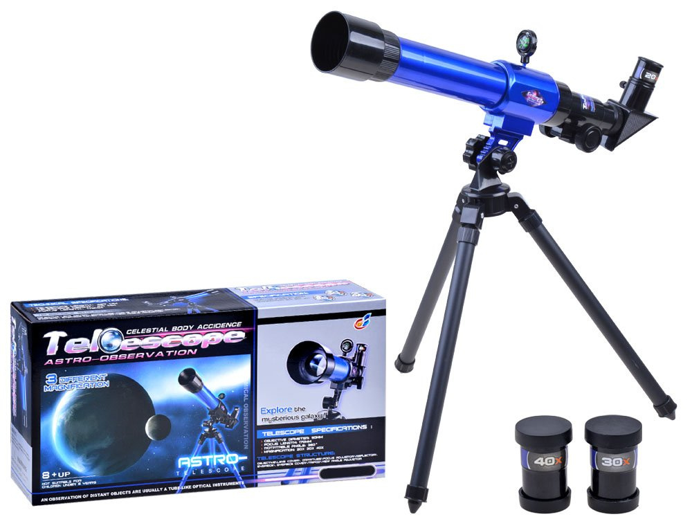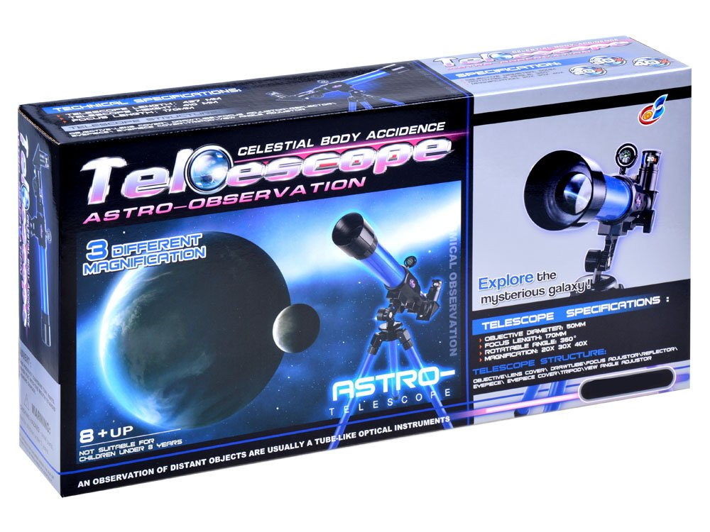 Dalekohled je vyroben z plastu, hliníkový stativ.
